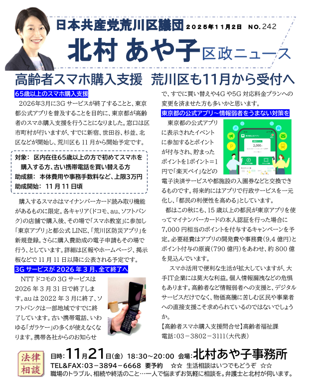 新しい区政ニュースです。 ぜひ、ご覧ください。 ☆高齢者スマホ購入支援・荒川区も11月から受付へ ☆公園管理運営・整備事業とバイオガス発電を視察しました ☆区行政サービスの非常勤化と民営化の現状 #日本共産党 #荒川区議会 jcp-arakawakugidan.jp/kitamura-news/… pic.x.com/lPLjC4FLqt