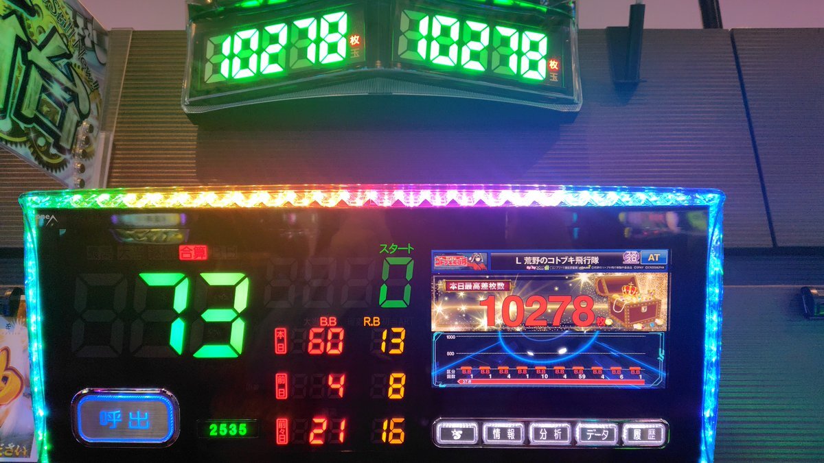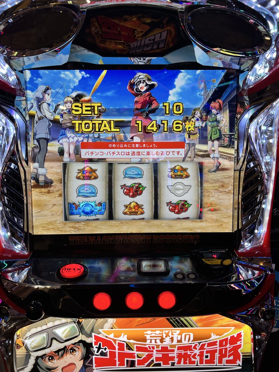 ほぼ初打ち『荒野のコトブキ飛行隊』 40k投資⇒10278枚! 約160k勝ち! 6号機で、初万枚!! ST49Gまで伸ばすも、1G足りない流れもありこのまま終了の雰囲気の中、初HYPERでRUSH→31G乗せ!(ここだけでMAXデス⋯ ST後、穴で引き戻して更に2600枚 引き強デスネ #スマスロ #荒野のコトブキ飛行隊 pic.x.com/podcBzhpbS