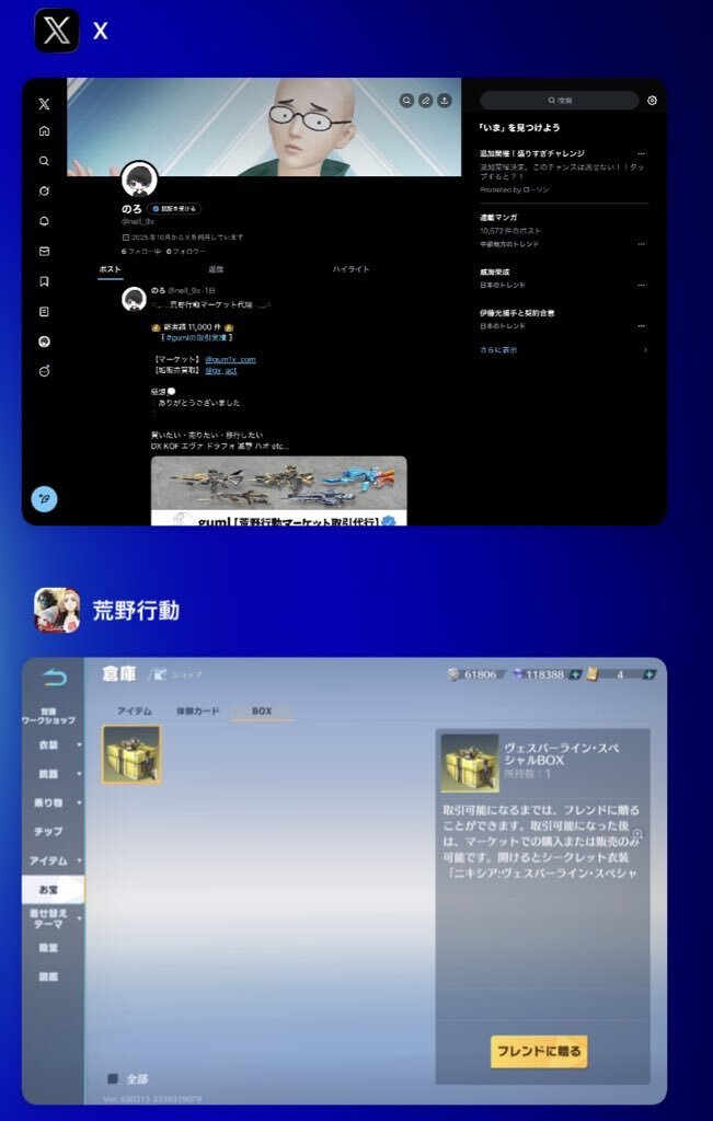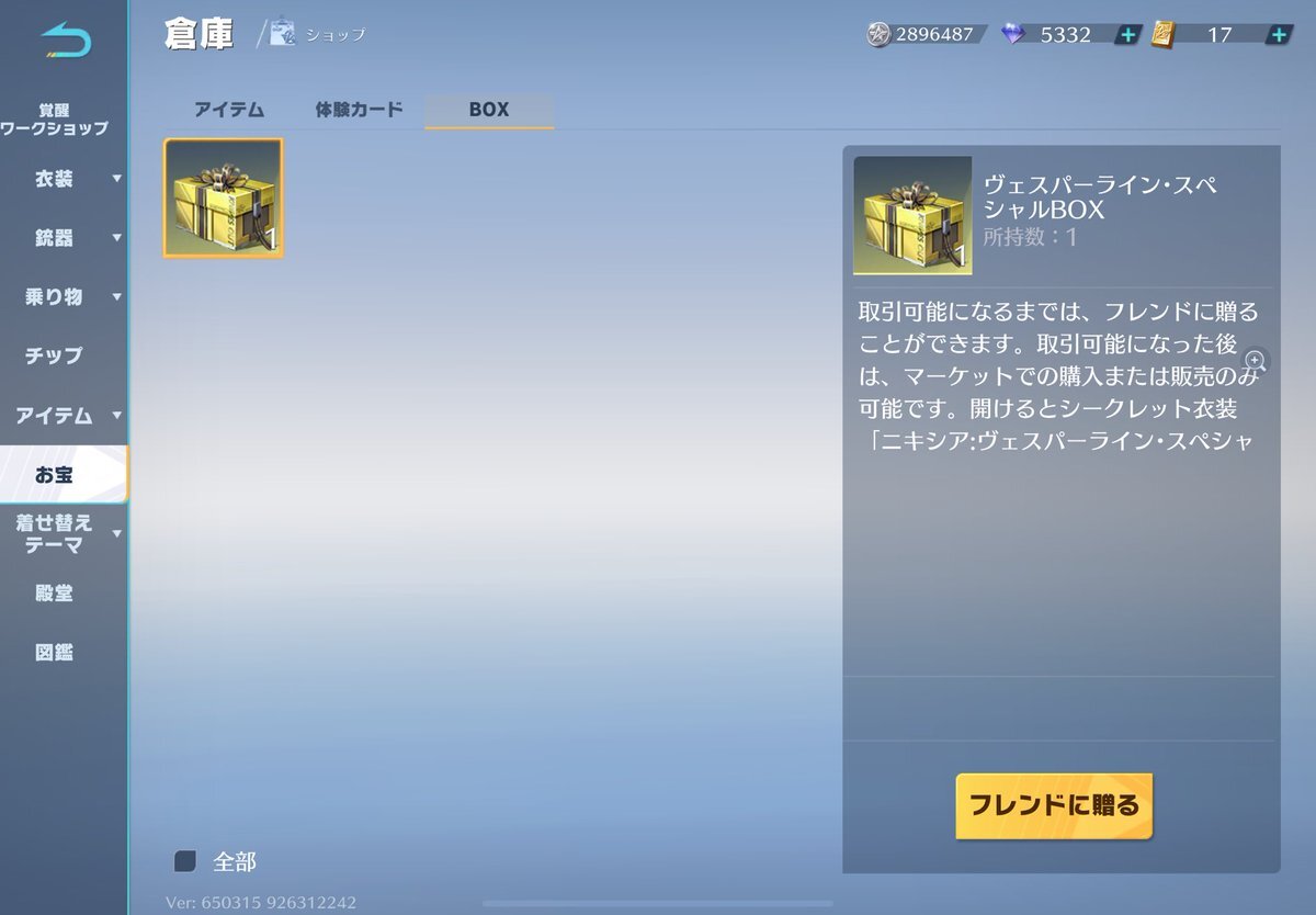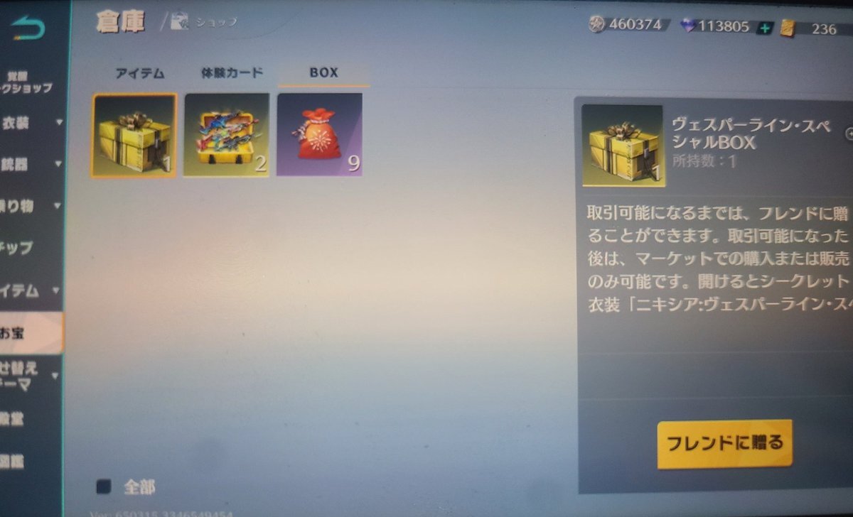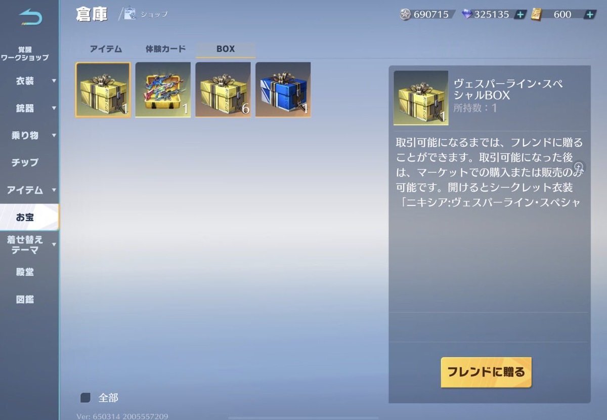 ニキシアヴェスパーライン・スペシャルBOX誰か7000Payで買い取ってくれる人いませんかー?FF外からも可です。フレンドから追加して贈ります #荒野行動 #荒野行動8周年 #ヴェスパーライン・スペシャルBOX pic.x.com/YXUJ9z8TvR