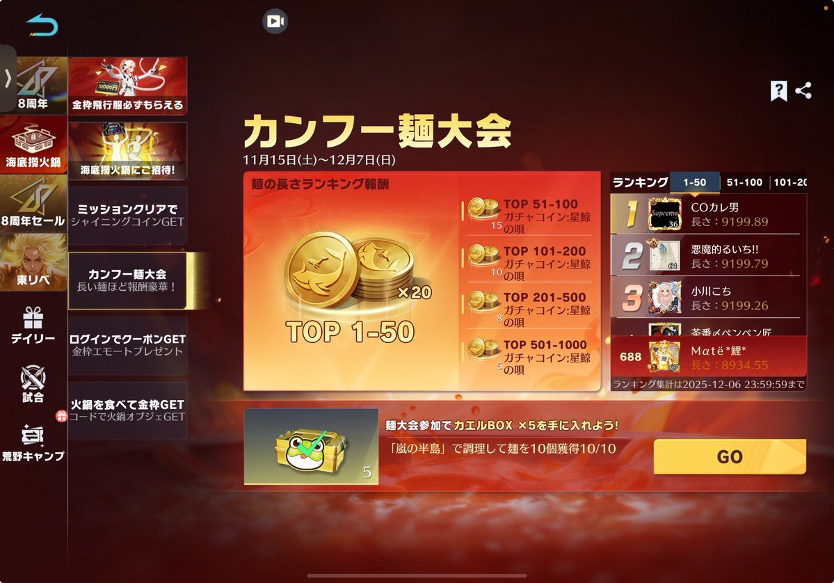 🐋荒野行動8周年記念ガチャ「星鯨の唄」🐋 11/20(木)10時〜スタート! 輸送機「星海のクジラ」登場! 進化でカラー&演出変化! 今なら獲得で「8周年限定スキン」が付いてくる🎁 「北冥の鯤」所持で50連 「青雲の龍」でさらに50連! RPで抽選10名様にアマギフ2000円プレゼント!