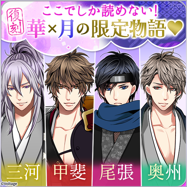 #恋乱LB#華の章 #月の章 #ボル恋 「華×月の限定物語」が復刻販売中🌙 「忍の日常」を描いた物語が真珠2個で買えちゃうよ♪ さらに限定衣装アバターも付いてくる💗 販売は、11/23(日) 15:59:59まで! #藤林朔夜 #猿飛佐助 #服部半蔵 #藤林弦夜 #霧隠蛍 #鳴神恭一郎 pic.x.com/m0dauEdo82