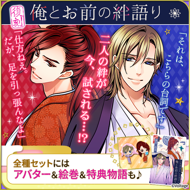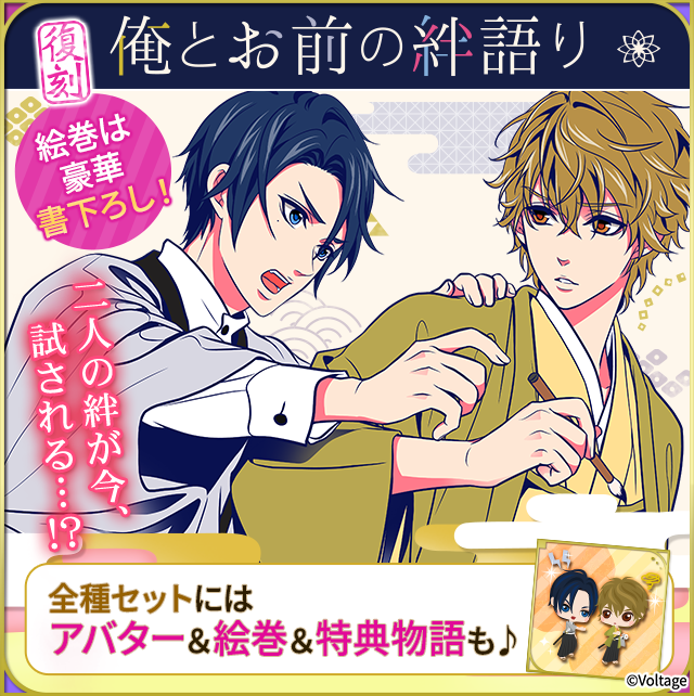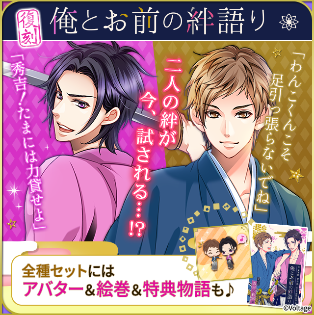 #恋乱LB#華の章 #ボル恋 「俺とお前の絆語り」が復刻販売中💗 秀吉と利家の身体が入れ替わってしまい…!? 全種せっとでは『限定絵巻&アバター&特典物語』が付いてくるよ♪ 販売は、11/17(月) 15:59:59まで! #豊臣秀吉 #前田利家 pic.x.com/A13JYcltQ7