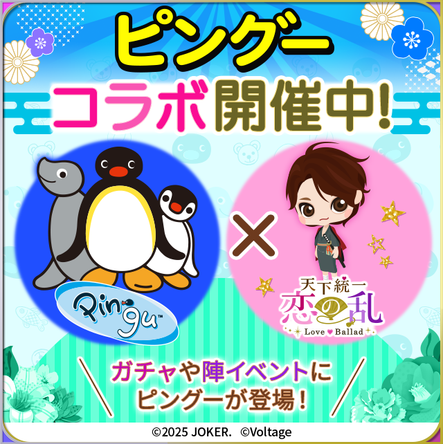 #恋乱LB#華の章 #月の章 #ボル恋 みんな大好き『 #ピングー 』が恋乱とコラボ★ まずは、ガチャやお着物こんてすと、ミッションキャンペーンがスタート! 今すぐアプリを開いて詳細をチェック♪ pic.x.com/1o99KNE0Rf