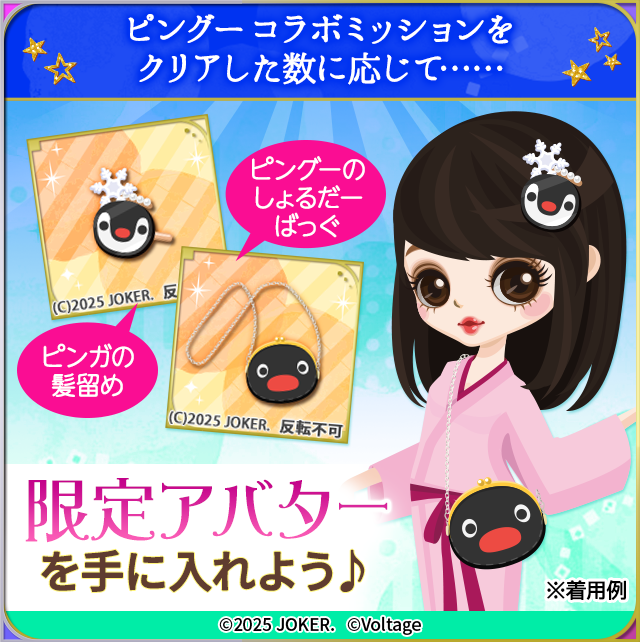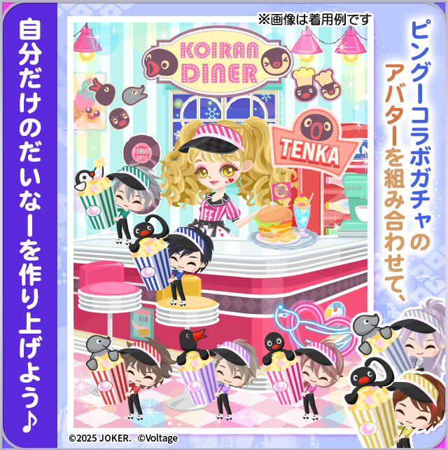 #恋乱LB#華の章 #月の章 #ボル恋 #ピングー コラボガチャが2種類配信中! 華・月の両方で着用できる 『ピングーのお気に入り♡れとろだいなーコレクション』と、 『ピングーと一緒に♡だいなーで働く殿・忍コレクション』が配信中♪ #お着物こんてすと の対象アバターだよ♪ pic.x.com/dUl9GptLoO