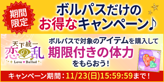#恋乱LB#華の章 #月の章 #ボル恋 \キャンペーン実施中!/ お買い物するなら #ボルパス がお得! 対象の真珠やラブパスをご購入いただくと、「期限付きの体力」をプレゼント💖 キャンペーンは、11/23(日)15:59:59まで! ▼詳しくはこちら▼ passports.voltage.co.jp/contents_info?… pic.x.com/4WetvPsoSb