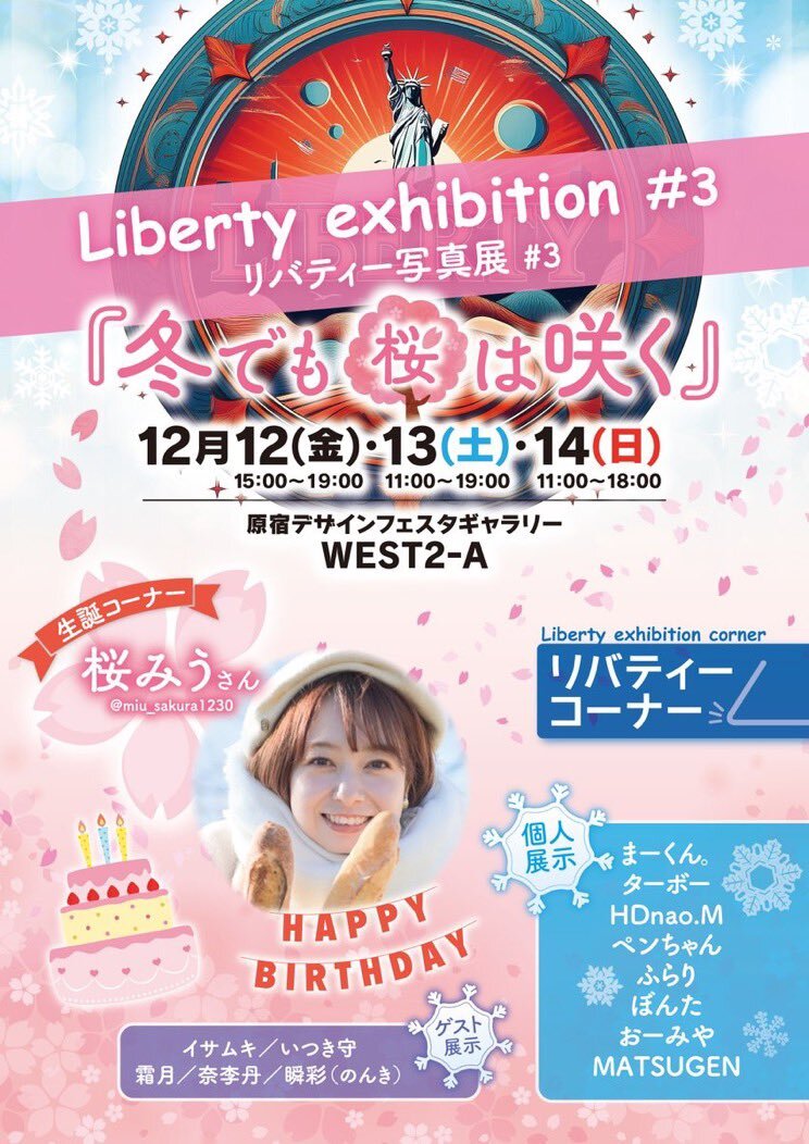 次回の #リバティー展 12/12〜14@デザフェスWEST2-A 桜みうさん生誕コーナーが今回初の試みあり❣️ 華宮みうさんとのmiumiuコーナー AOさんとのコラボ風コーナー メイン展示は12月なので1年間の感謝と、リバティーコーナーで最近撮影したお写真たくさん飾らせていただきます ※モデルさんは後日発表🍓 x.com/liberty2025020…