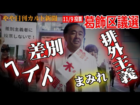 #葛飾区議選が、候補者や応援弁士の差別的な演説でひどいことになっています。昨日取材した映像を公開しました。 youtu.be/v_gWqZllGI4 わかっている範囲で、応援演説の予定です。 ◇鈴木信行応援演説 11/8 19時 佐々木千夏 ◇まるよしたかふみ応援演説 11/4、5 へずまりゅう 11/6か7