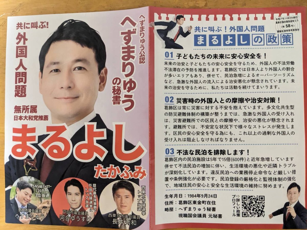 あなたの言論は「お前ら左翼はどっからきた!」とマイクを使って有権者を恫喝するものでしたよ #1107葛飾プロテスト #まるよし落選 #葛飾をデマと差別から守ろう pic.x.com/cqCgsy6DQV x.com/takafumi_1984/…
