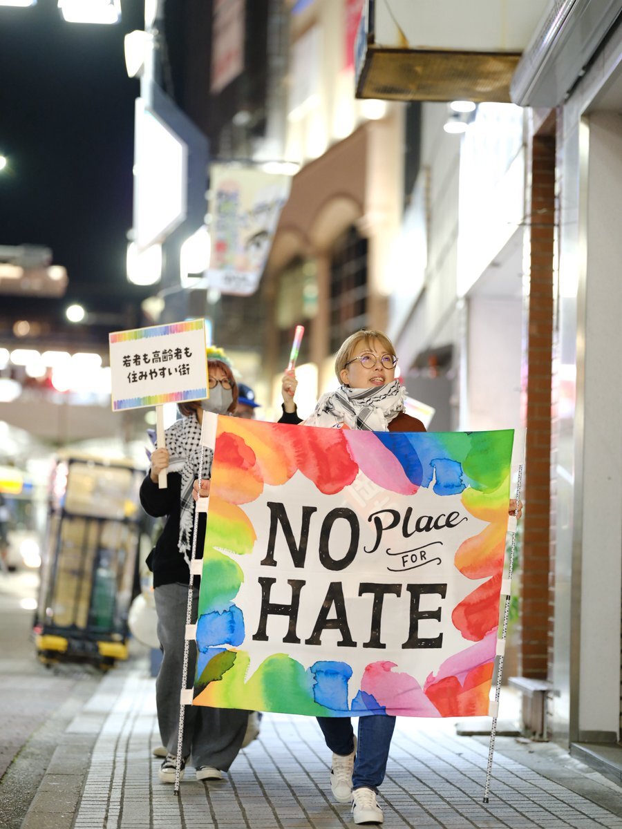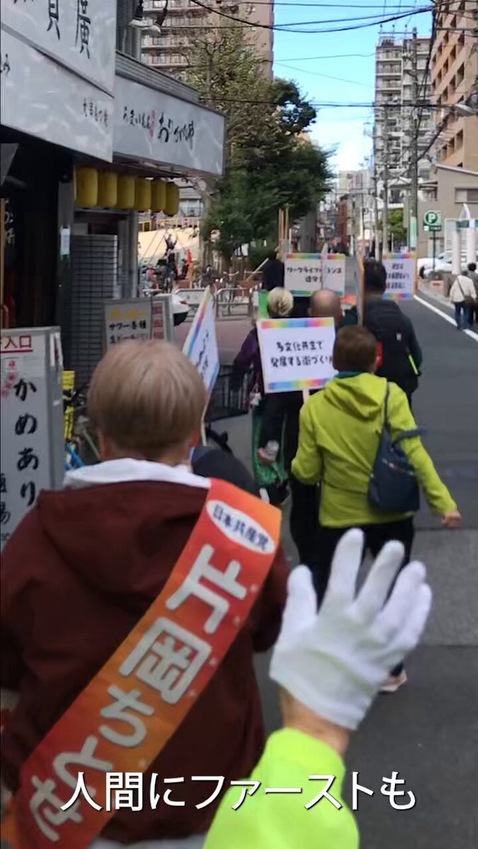 「人間にファーストもセカンドもありません」 歩きながら差別撤廃・多文化共生で葛飾区の発展を訴える葛飾区議候補 #片岡ちとせ さん。亀有公園に向かいつつ、NO HATE! 公園は、さまざまな人々が集い、共に遊び憩う場所。 #日本共産党 #葛飾区議会議員選挙