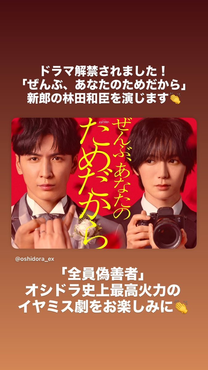 全員偽善者‥ってワードとサスペンスということで、流星くんの演技が楽しみでしかない‼︎新妻不倫の闇堕ちの演技がびっくりする位上手惹かれてからその後も、NOISES OFF、キスバレ、裏社員、スティンガースと流星くんの演技に魅了されてきたからワクワク‼︎ #藤井流星 #ぜんぶあなたのためだから