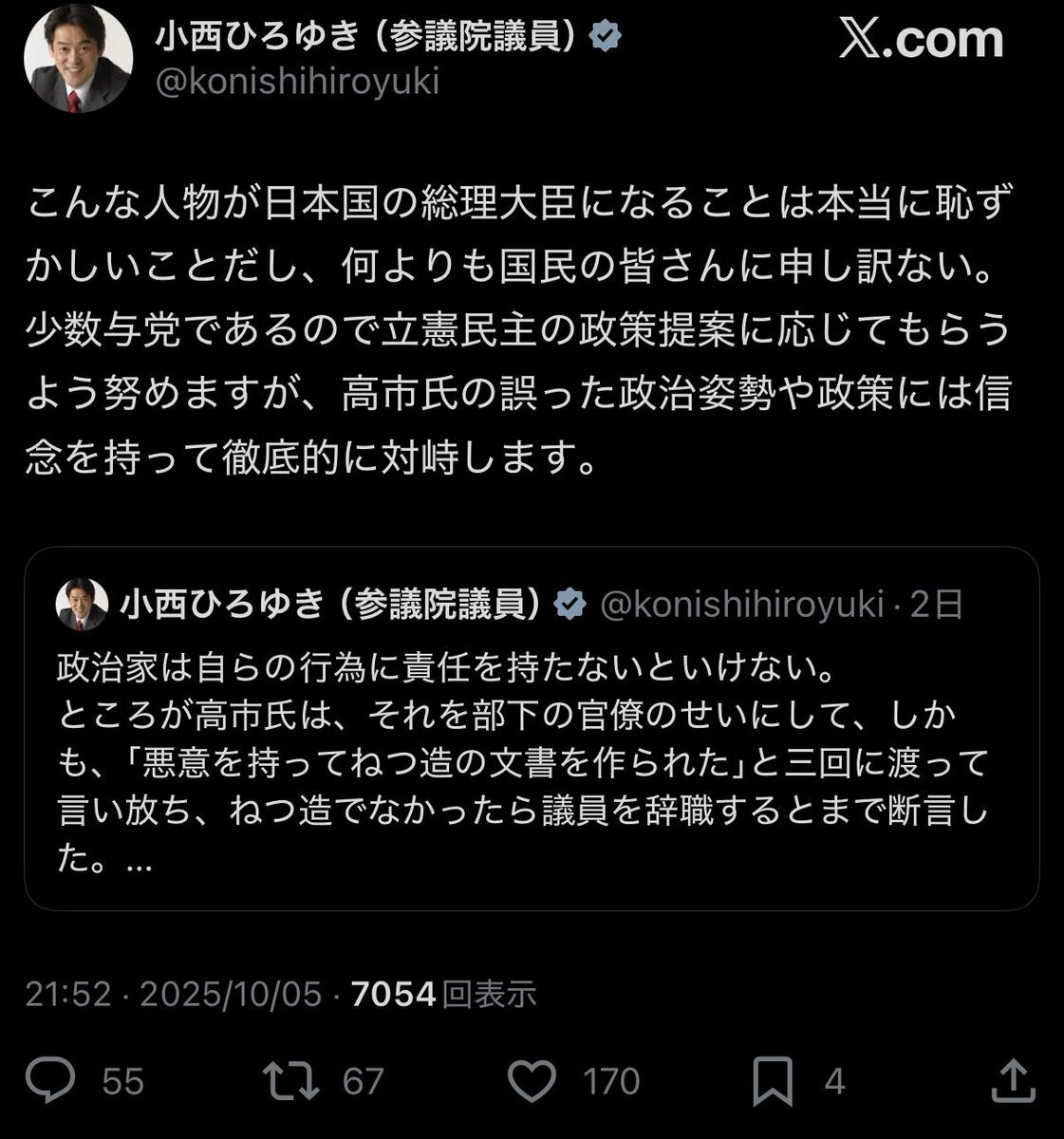 この藤原のりまさと言う立憲の議員は、 クルド人への非難に対し、 「差別主義者は残滅せよ」 と過去にポストした輩。 言ってる事は合ってるが、 何を考えて保守党に近づいてくるのか、 非常に不思議である。 #藤原のりまさ pic.x.com/N5Zh0GBaCs