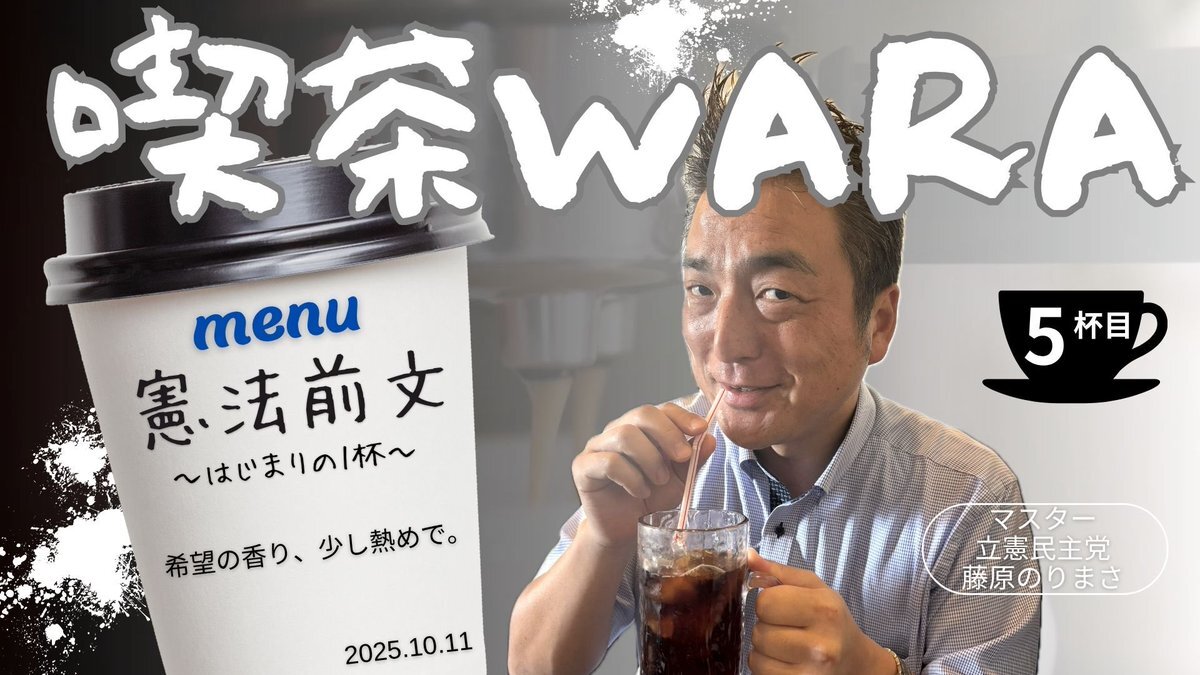 今週の喫茶WARA ☕️憲法前文はじまりの一杯 〜希望の香り、ちょっと熱めでコーヒー 憲法の前文を読んだ事がありますか? 動画を観ながらぜひ堪能してください。 youtu.be/e8X_7-6X98g?si… @YouTubeより