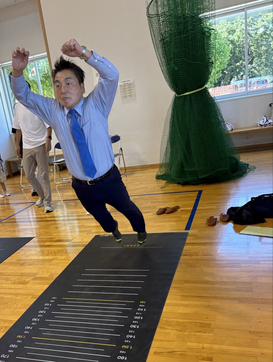 スポーツの日ですね👟 いちい信金アリーナで「一宮市ニュースポーツフェスティバル2025」が開かれました。 体力測定をさせていただくことに🏃‍♀️ 握力、腹筋、長座体前屈、反復横跳び、 そしてこちらは✨立ち幅跳び✨の様子。 Q藤原のりまさは何センチ跳んだでしょうか? #藤原のりまさ pic.x.com/VY5juqeW35