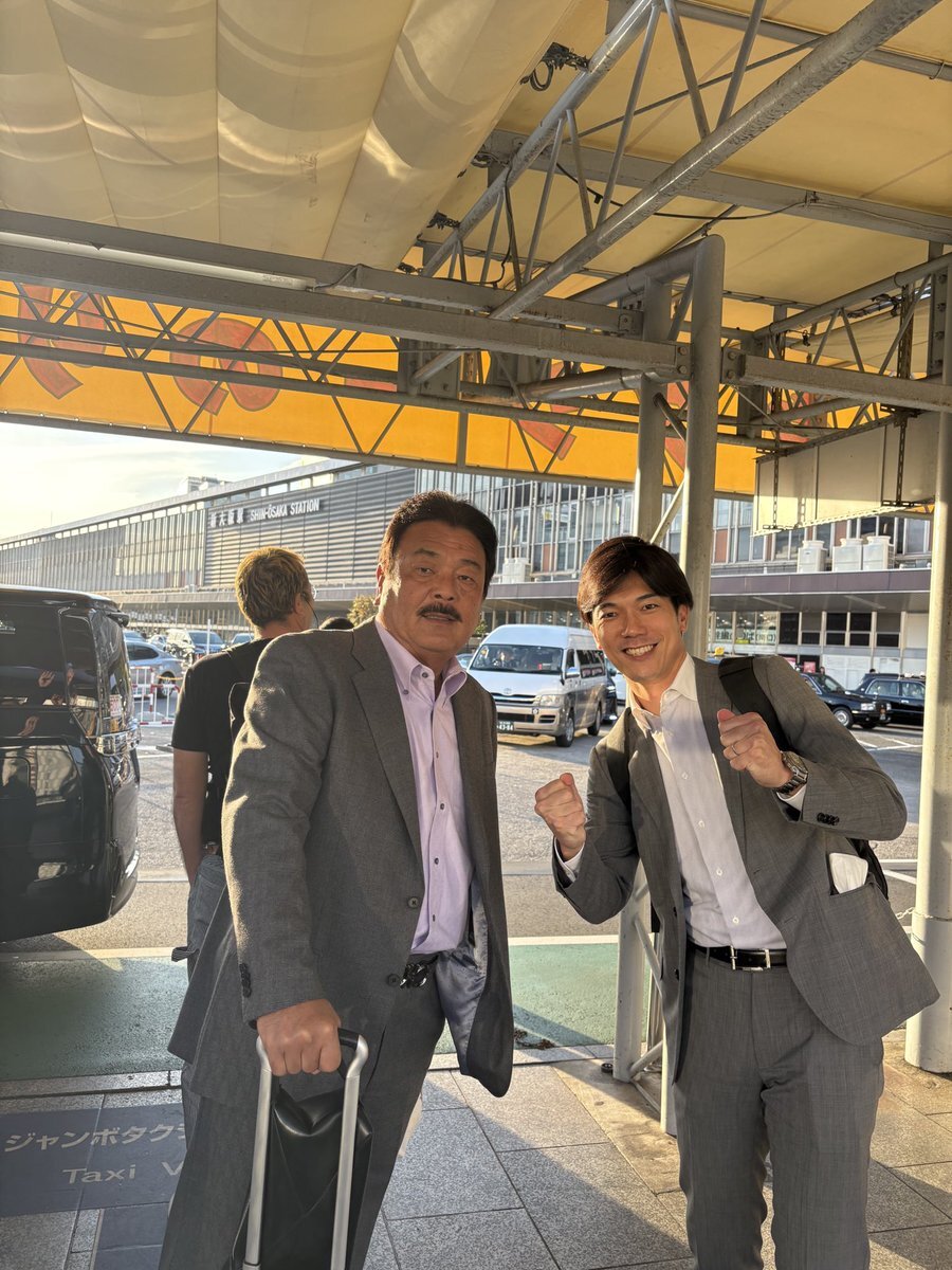 新大阪に到着!!ホークスの日本一を願って!! 特番の準備を進めます🔥🍑 #ホークス #日本シリーズ  #藤本博史 さん #櫻井譲士 アナ pic.x.com/1ryMmMlGAt