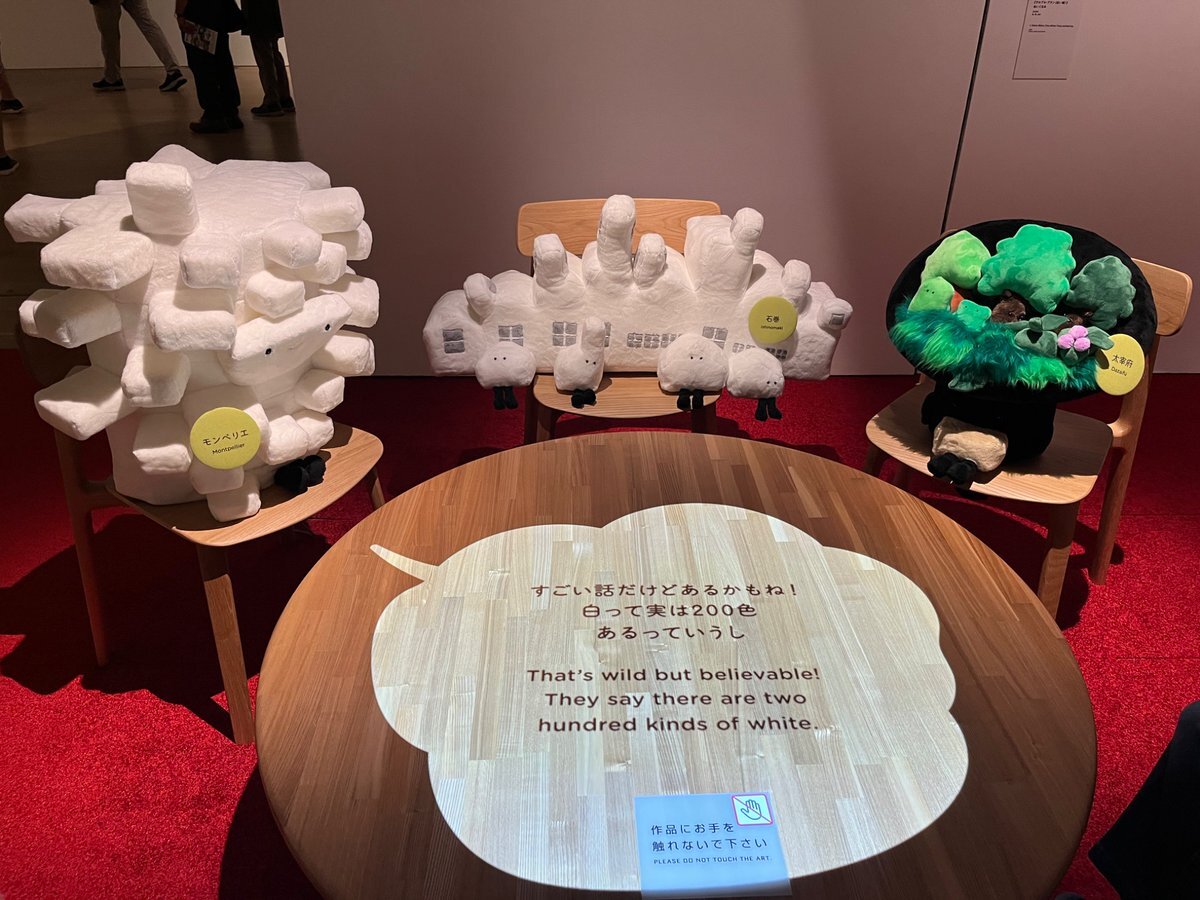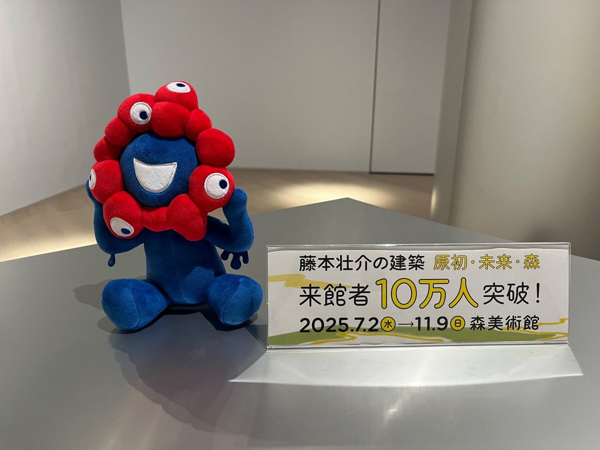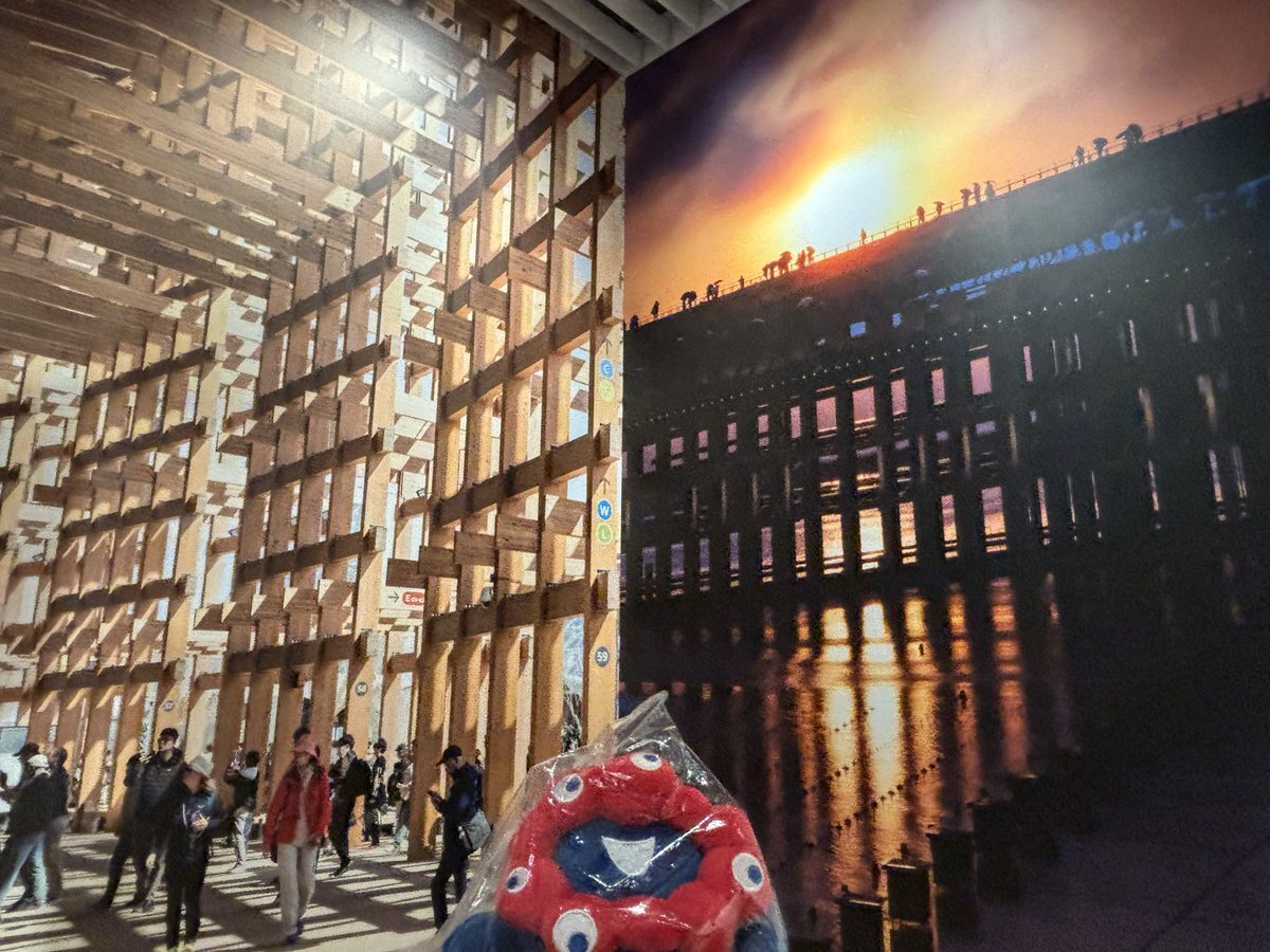 森美術館で開催中の「藤本壮介の建築」 大屋根リングをはじめ、藤本さんの代表建築のぬいぐるみ(ゆるキャラ?)が喋るのも見どころのひとつ。このぬいぐるみ、売ってないのかな。 #大阪・関西万博 #大屋根リング #藤本壮介の建築 #EXPO2025 #EXPO2025Forever pic.x.com/hJ076G0uzj