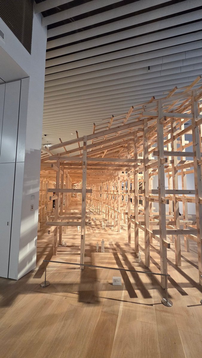 そして大屋根リングの1:5模型だよー😆 すでに懐かしい🥹 ちゃんと木材の良い香りがしてる!! 2枚目はイタリア館に並んでる人だ!(笑) 大屋根リング(模型)の下に入れるの感激する😆 #森美術館 #大屋根リング #藤本壮介の建築 pic.x.com/WCw8qylXAF