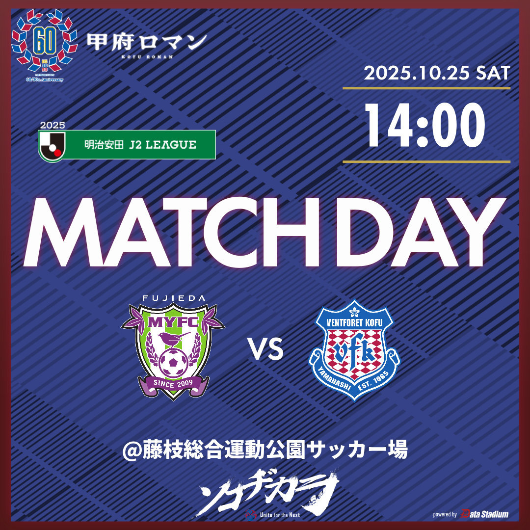 本日はマッチデー! 🏆明治安田J2リーグ 第34節 🆚#藤枝MYFC 🗓 10/25 14:00キックオフ 🏟#藤枝総合運動公園サッカー場 #ヴァンフォーレ甲府 #vfk #ソコヂカラ pic.x.com/vYYdDNqTo2