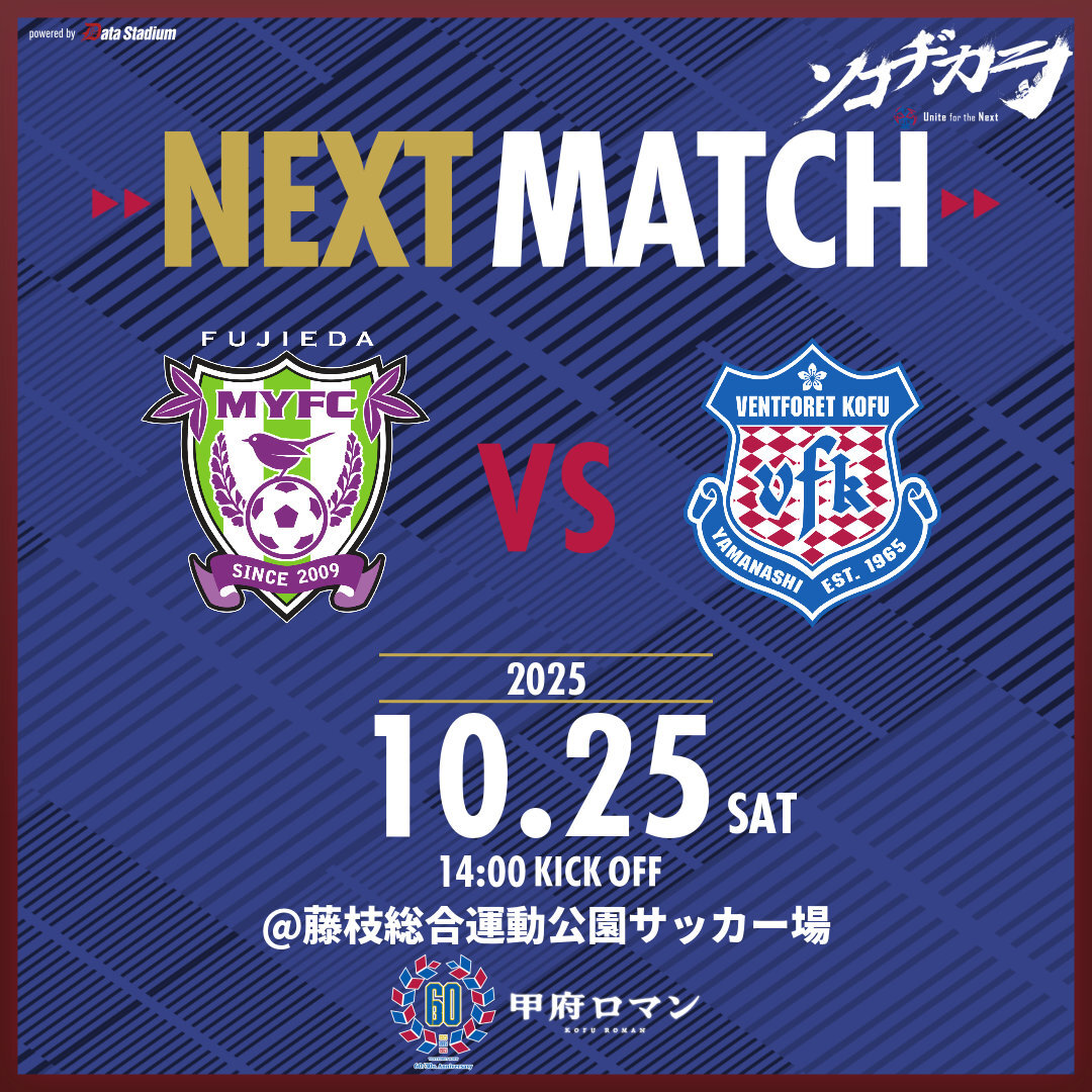 次の対戦カードは 🏆明治安田J2リーグ 第34節 🆚#藤枝MYFC 🗓 10/25 14:00キックオフ 🏟#藤枝総合運動公園サッカー場 #ヴァンフォーレ甲府 #vfk #ソコヂカラ pic.x.com/vj3C2MgTIt