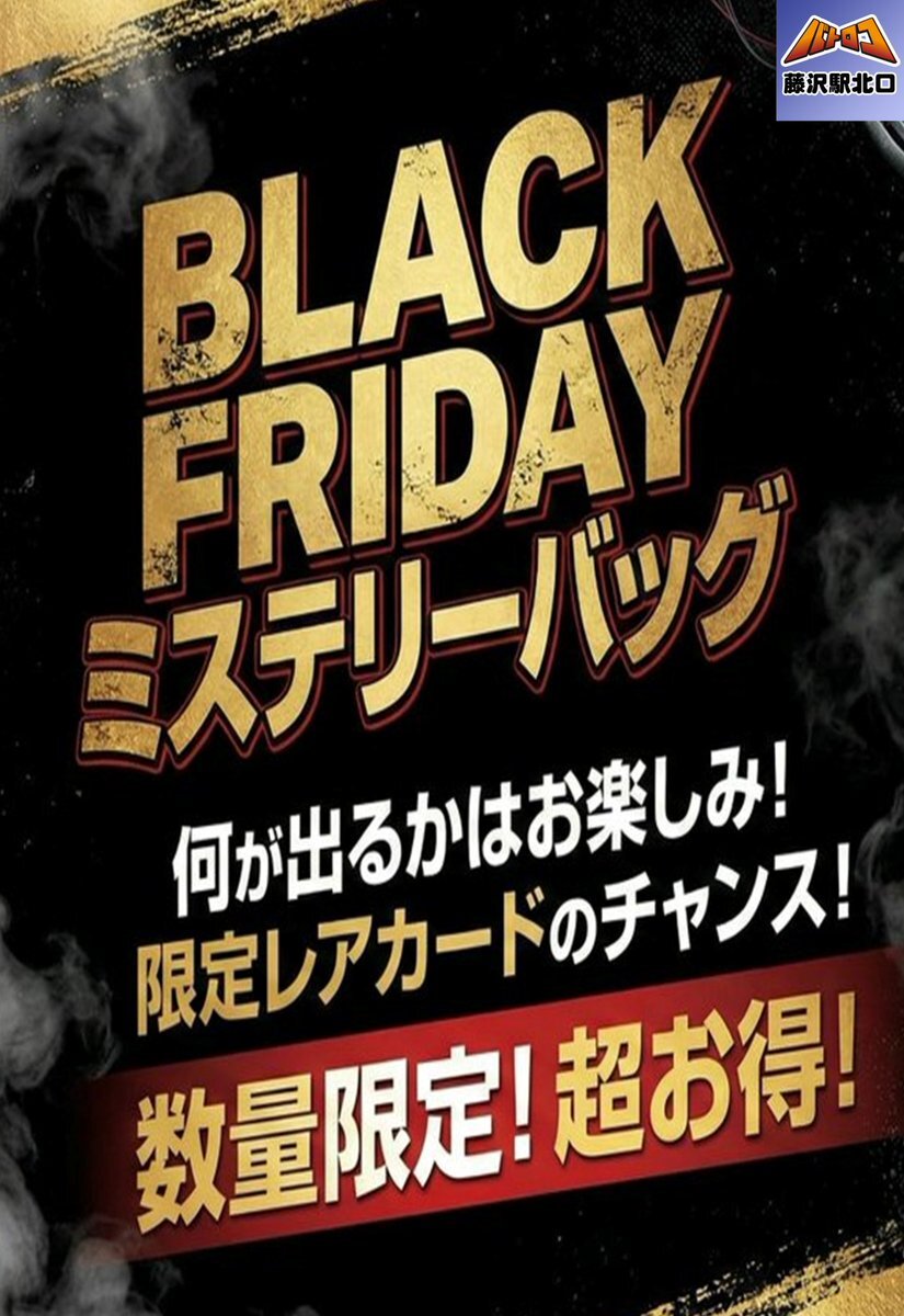 🔥BLACK FRIDAY LIMITED🔥 ブラックフライデー限定第2️⃣弾 ただ今より、レジ前にて ⚡️#ポケモンカード⚡️ ミステリーバッグの販売を開始いたします🔥 ✨1袋1️⃣1️⃣万円-✨ ※なくなり次第終了です #フジロコ #バトロコ #藤沢 #ブラックフライデー