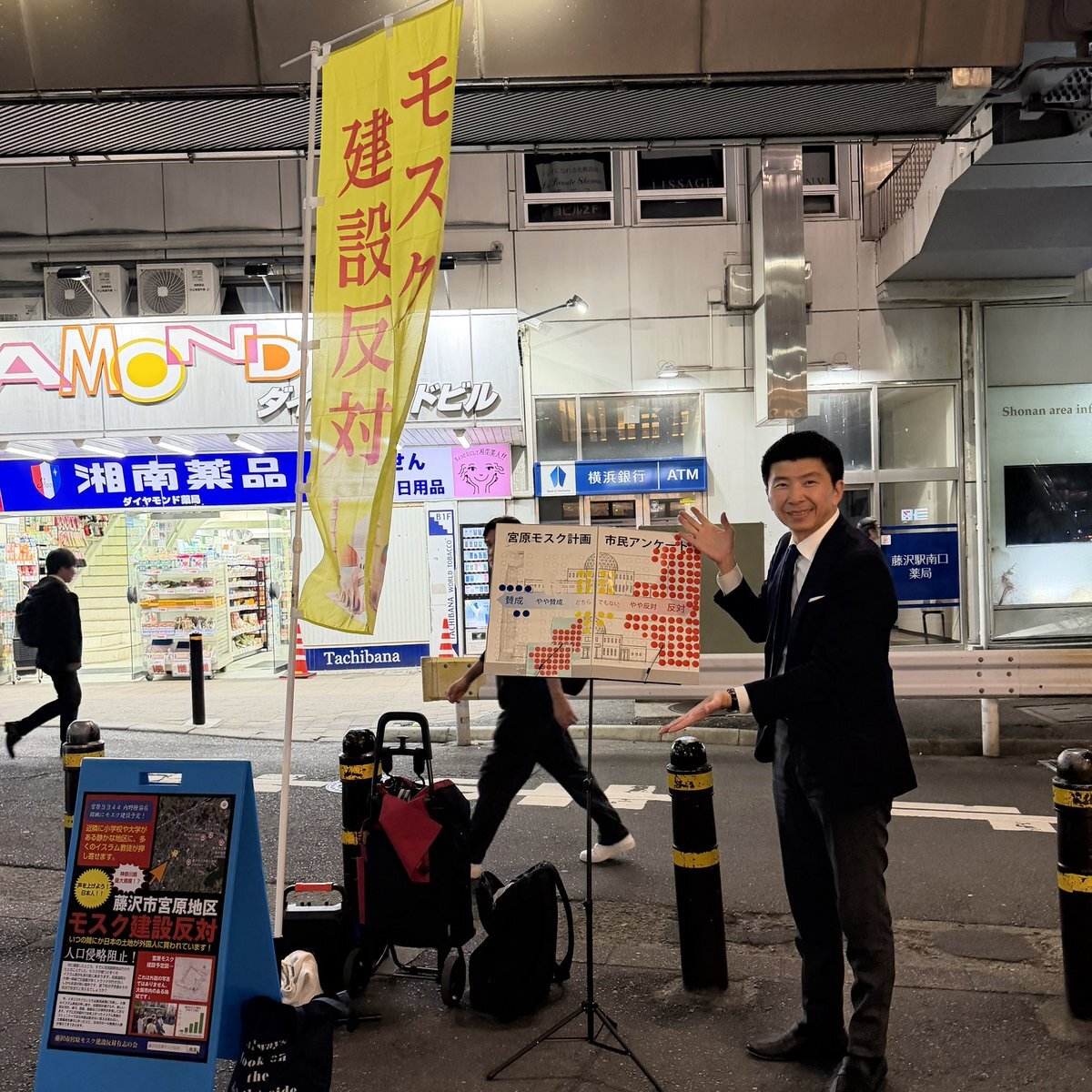こんばんは! 今日のチラシ配りは、 湘南台駅! 18時から20時! ぜひご参加ください!! #藤沢モスク反対