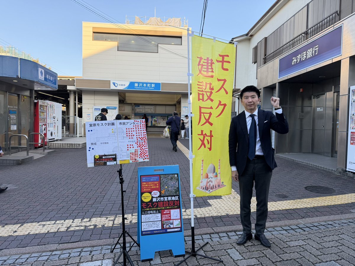 #藤沢モスク反対 3日目 藤沢本町駅で7時から9時までチラシを配っています! 藤沢市の皆さん、残された時間はあと8日です! 時間がありません! どなたか地元の方が立ち上がってください! 我々も全力でがんばります! #キクタケ進 #武蔵野市 #保守