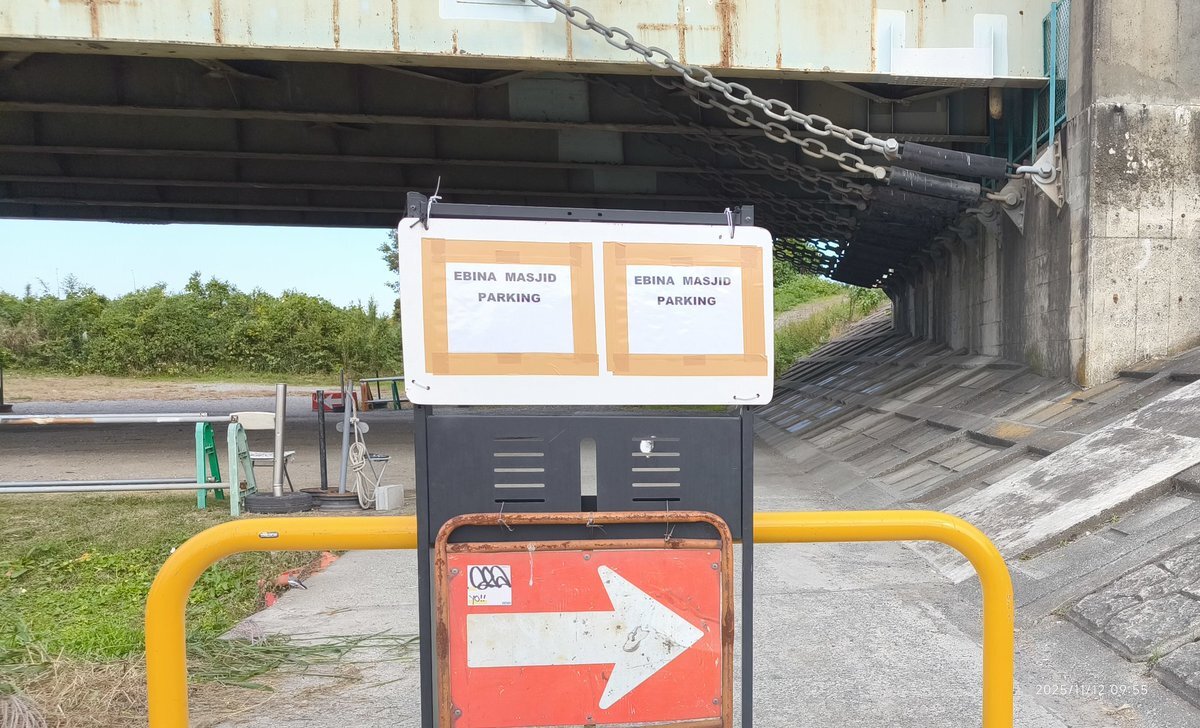 🦐マスジド金曜礼拝 正午礼拝の帰り渋滞の車列に 強引に🚗突っ込んでみました🤭 建物横で停められ 左折しろと言われたが 少しづつ突っ込んで河川敷🅿️に ※公道を勝手に通行止めはNGじゃ 先週☔より人出多し 半分も出庫されていない状態 藤沢宮原でやられたら大渋滞必至 #藤沢宮原モスク建築反対