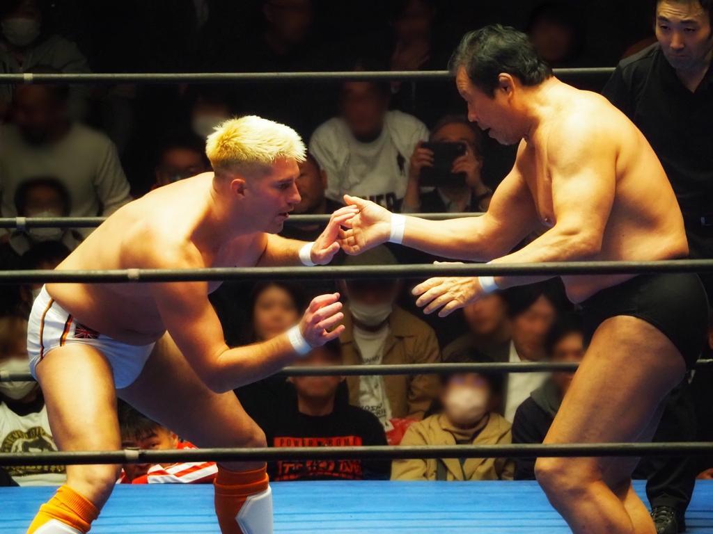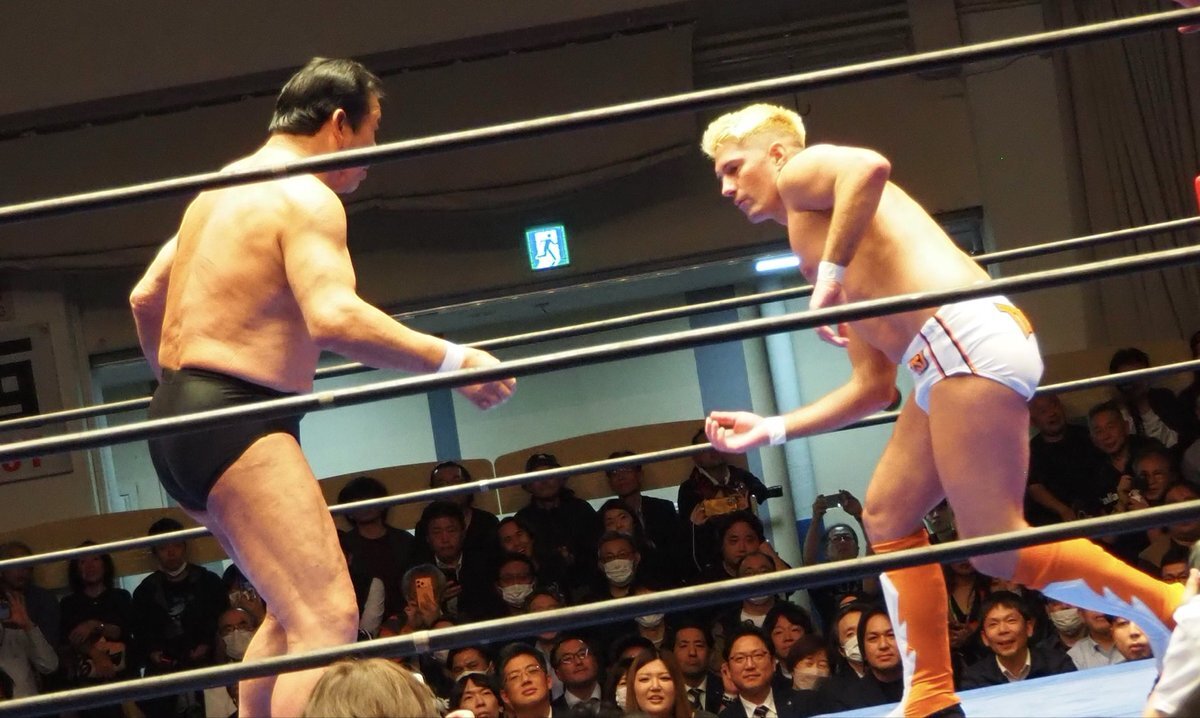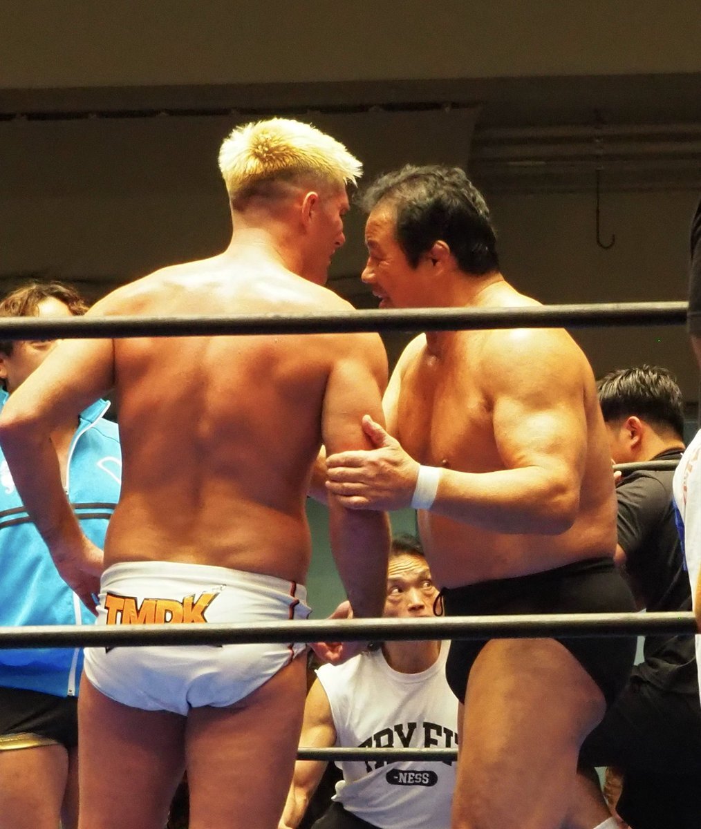 強い人同士が向き合う、まさに闘いがはじまるときの雰囲気ってしびれるよね。 #njpw #ドラディション #藤波辰爾 #無我 #DRAGONEXPO #ザック・セイバーjr pic.x.com/wXM1KFLq6F