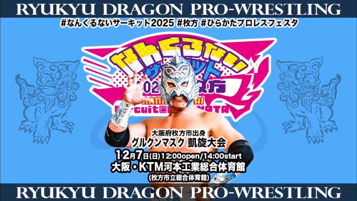 【12/7 #グルクンマスク 凱旋大会情報】 全対戦カード発表! 前売りチケット絶賛発売中です! 公式サブスクにて出場選手独占コメント続々UP! ryukyu-dragon.com/?p=13714 #rd_pw #ProWrestling #なんくるないサーキット2025 #枚方 #ひらかたプロレスフェスタ #ドラディション #DRAGONGATE #SENJO