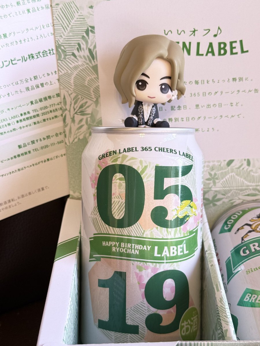 りょうちゃん缶が届いた🎁✨ 賞味期限来年の6月までだから飾って、りょうちゃんの5/11の33歳のお誕生日に飲みます🍻✨ キリンさん素敵なプレゼントありがとうございます!これからも沢山飲みますෆ #キリンビール #淡麗グリーンラベル #グリーンラベル #MrsGREENAPPLE #藤澤涼架 #ミセスグリーンラベル pic.x.com/XecXzCt5Qf