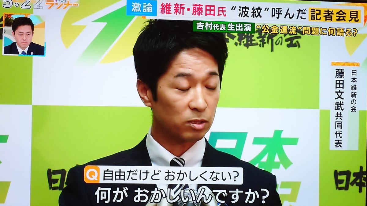 「コイツ態度デカい…」ケンカ腰会見TV全面謝罪の維新・藤田代表 VS橋下さんにもケンカ売ったら皆認めると東野番組で煽られnews.yahoo.co.jp/articles/2d18c… しおらしくしても遅い。国会にチンピラは要らん。 #藤田文武の議員辞職を求めます #維新は犯罪者集団 #維新は反社