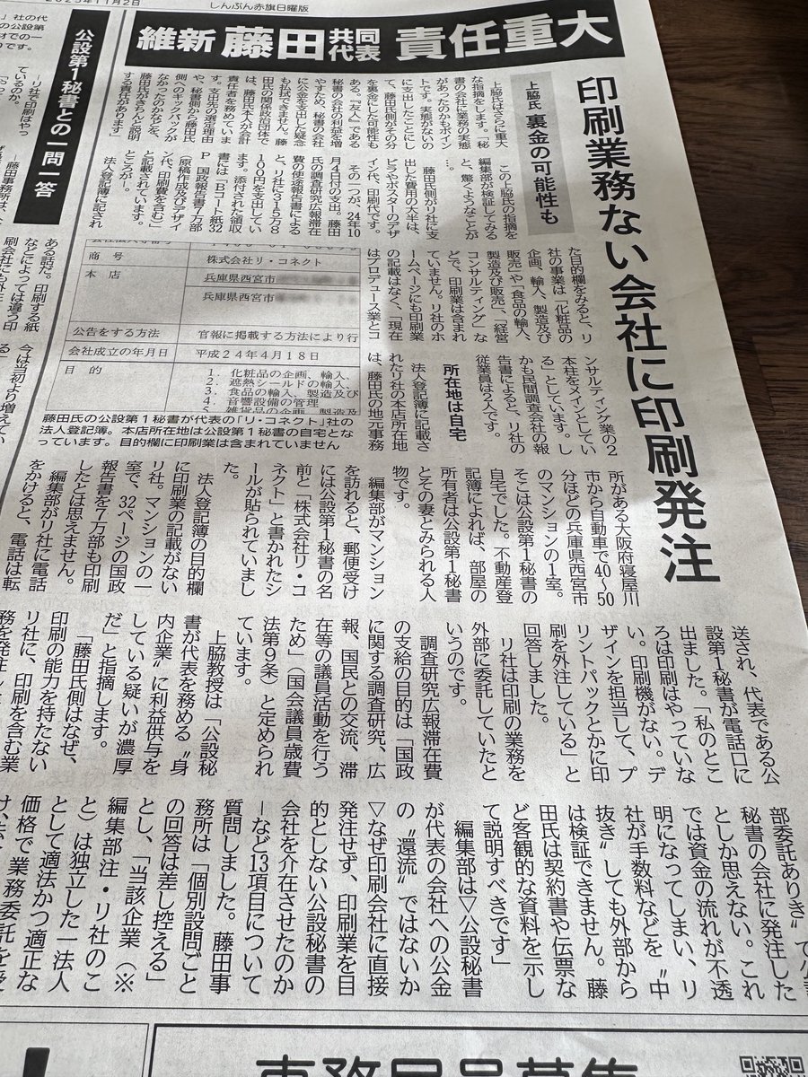"維新・藤田共同代表に“赤旗砲”連発 「しんぶん赤旗日曜版」が「弁明覆す新証拠」と続報掲載" - 日刊スポーツ #SmartNews 赤旗のパフォーマンスは素晴らしい 他のメディアはどうなっているのか? #赤旗がんばれ #藤田文武やめろ #維新に騙されるな #高市やめろ l.smartnews.com/m-6x138fBe/NEl…