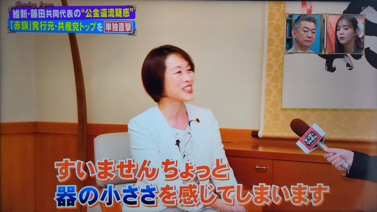 #田村智子 #日本共産党 委員長 TBS「#サンデー・ジャポン」で #藤田文武 維新共同代表の「赤旗は共産党のプロパガンダ紙」との揶揄に正面から反論「(藤田氏の)器の小ささを感じてしまいますね(笑)」と。ホンマに、その通りや👍️ #藤田文武名刺さらし問題 pic.x.com/yPk0lnllDl