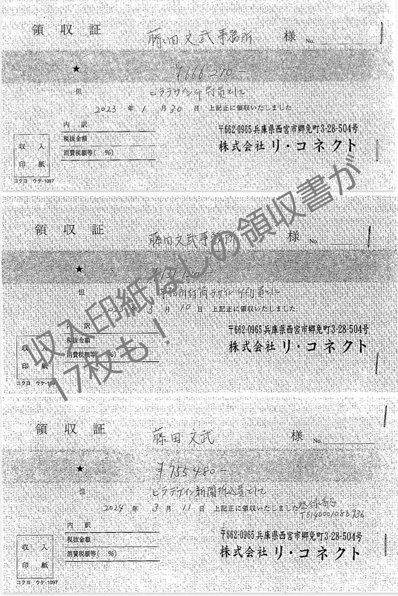 藤田さんの危機管理能力も相当疑わしい。 不祥事疑惑を突きつけられた場合には、まずその周辺を資料をひっくり返して徹底的に確認する。 藤田さんにはあの強気の会見まで時間は十分にあった。 脱税領収書も藤田さんに発行されたものなのだから、藤田さんが保管しているはず。 x.com/nitiyoutwitt/s…