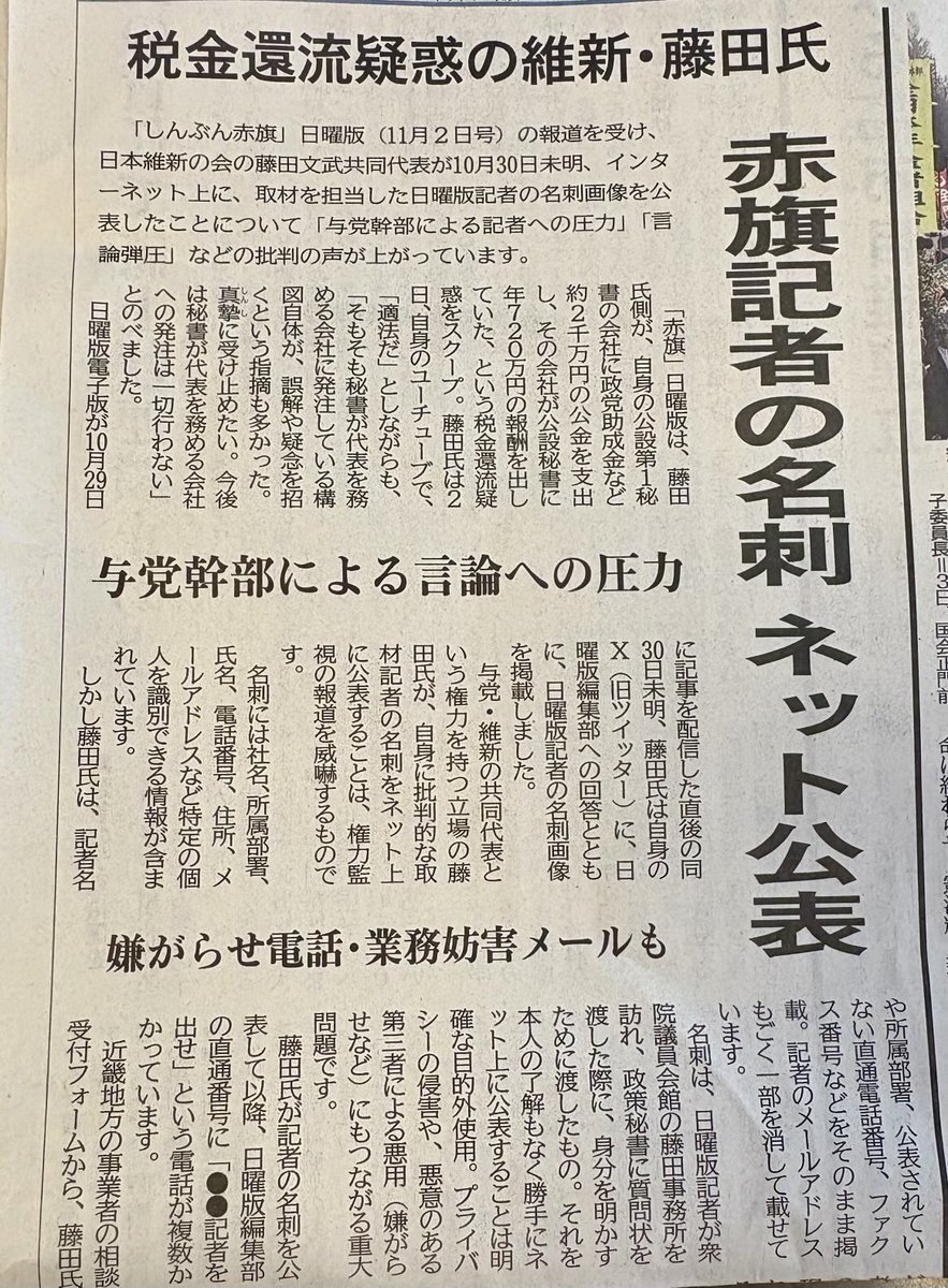 #共産党 と #しんぶん赤旗 は「威力業務妨害」への加担だとして、#藤田文武 を民事告訴するだけの被害が起きている。 #藤田酒飲み脳筋文武 は絶対謝罪しないから遠慮するな。法廷で決着つけてやれ