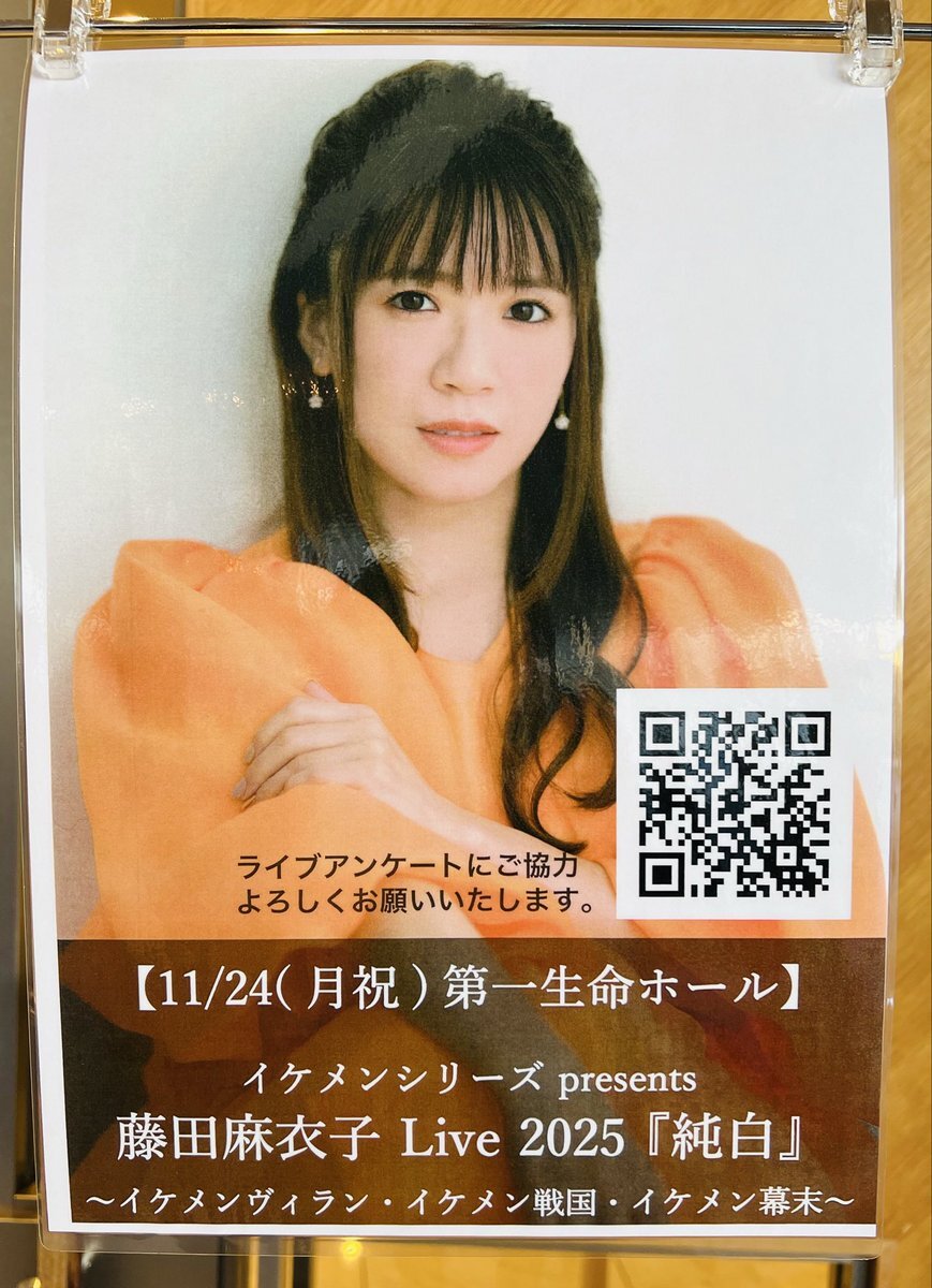 今日の イケメンシリーズ presents #藤田麻衣子 Live 2025 『純白』アンケートでありんす customform.jp/form/input/229… pic.x.com/f7zHGI3chh