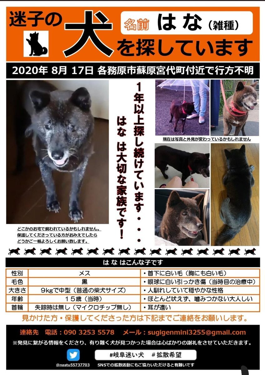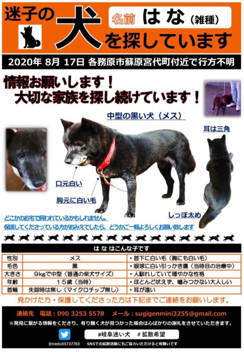 natsu 老犬 はな 岐阜県で行方不明!現在も捜索中‼️@natsu55737703