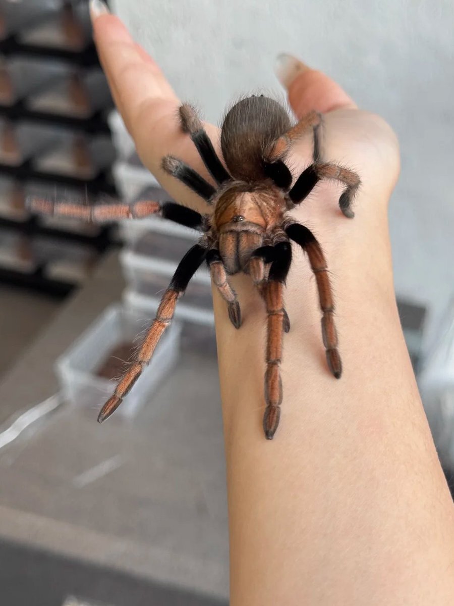 マンションの駐輪場にチャリ停めて 上行こうとしたらでかい蜘蛛がおって 手に乗せてもおとなしいし縁起いいから 飼うか迷ったけど可哀想やからやめた😗 虫嫌いやけど蜘蛛だけは触れるʕʘ̅͜ʘ̅ʔ🌀 でも鬼滅の蜘蛛を思い出し怖くなった🕷️ #蜘蛛 #タランチュラ #鬼滅 pic.x.com/k81QBge8eQ