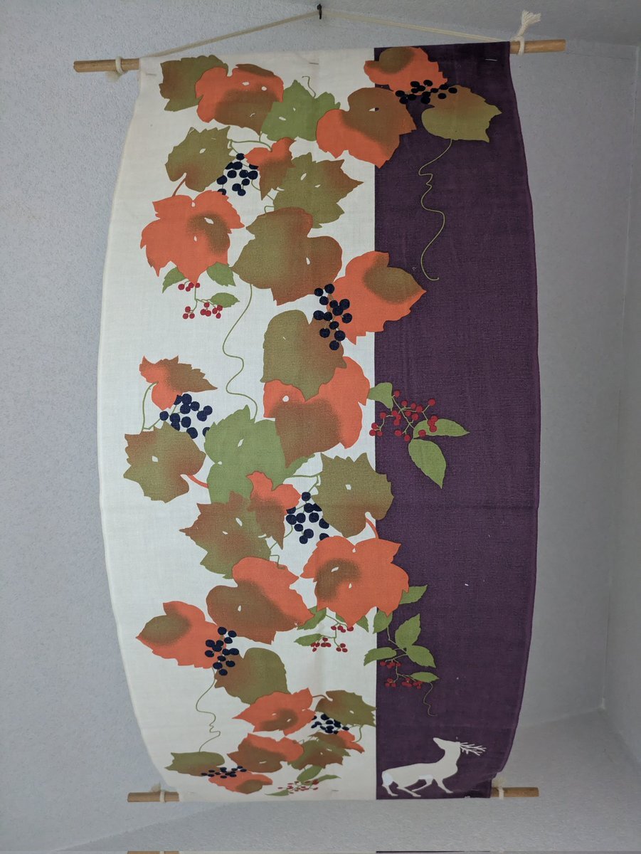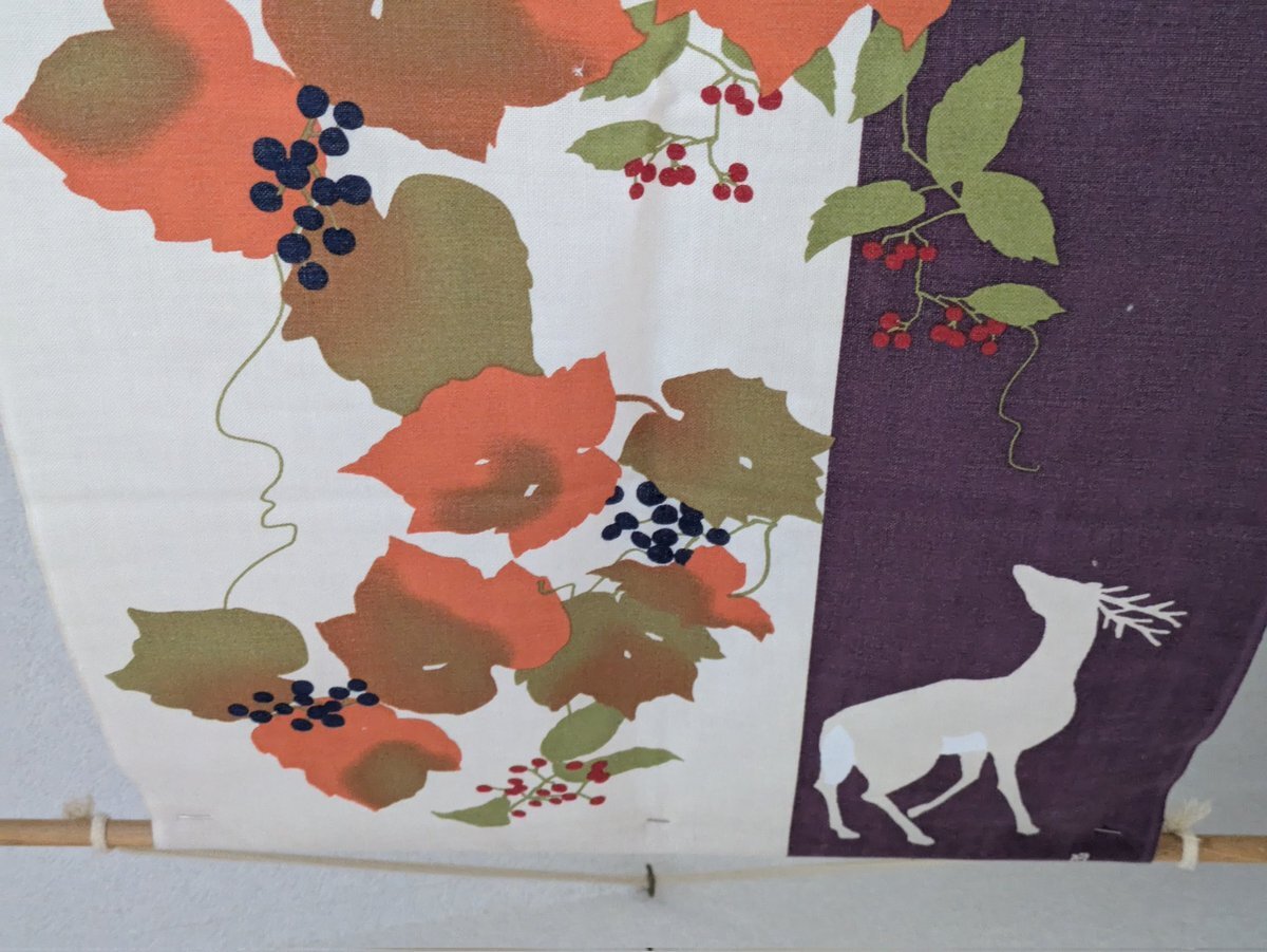 候が移りました 赤や青に実が色付き 赤朽葉色に染まる葉があざやかな 「秋想い」 振り向き見上げる鹿は 何を想うのか 今日は寒露 末候 第五十一候 蟋蟀在戸(きりぎりすとにあり)です #てぬぐい #濱文様 #寒露 #蟋蟀在戸 pic.x.com/ZY3H3PTflw