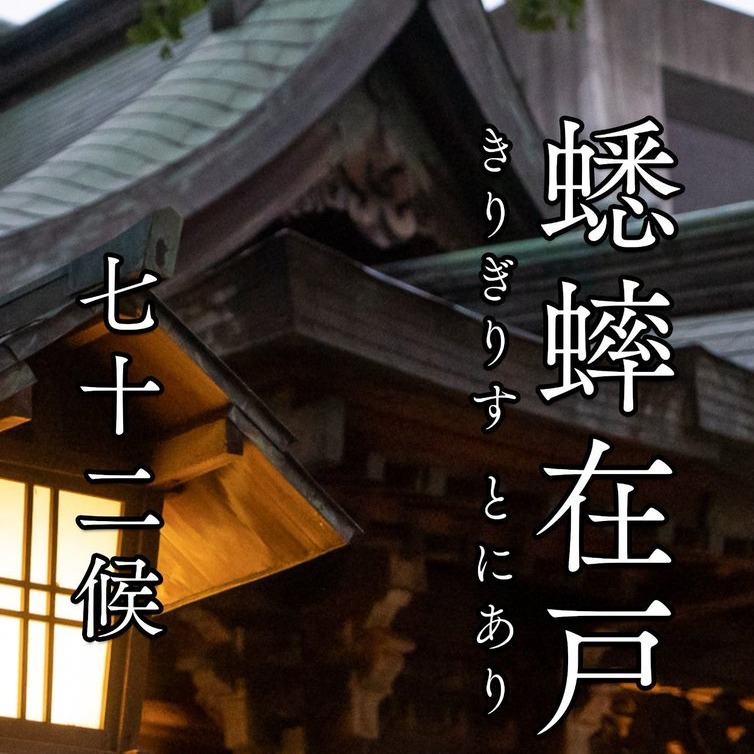 本日は #七十二候#蟋蟀在戸(きりぎりすとにあり)」 ここでの「きりぎりす」は秋に鳴く虫の総称と言われており、戸口で秋の虫が鳴きはじめる時季です 朝晩の冷え込みが増し、季節の移ろいを感じる今日 耳を傾けてみると、秋の声が聞こえるかもしれません🍁 pic.x.com/2UJWhHlesU