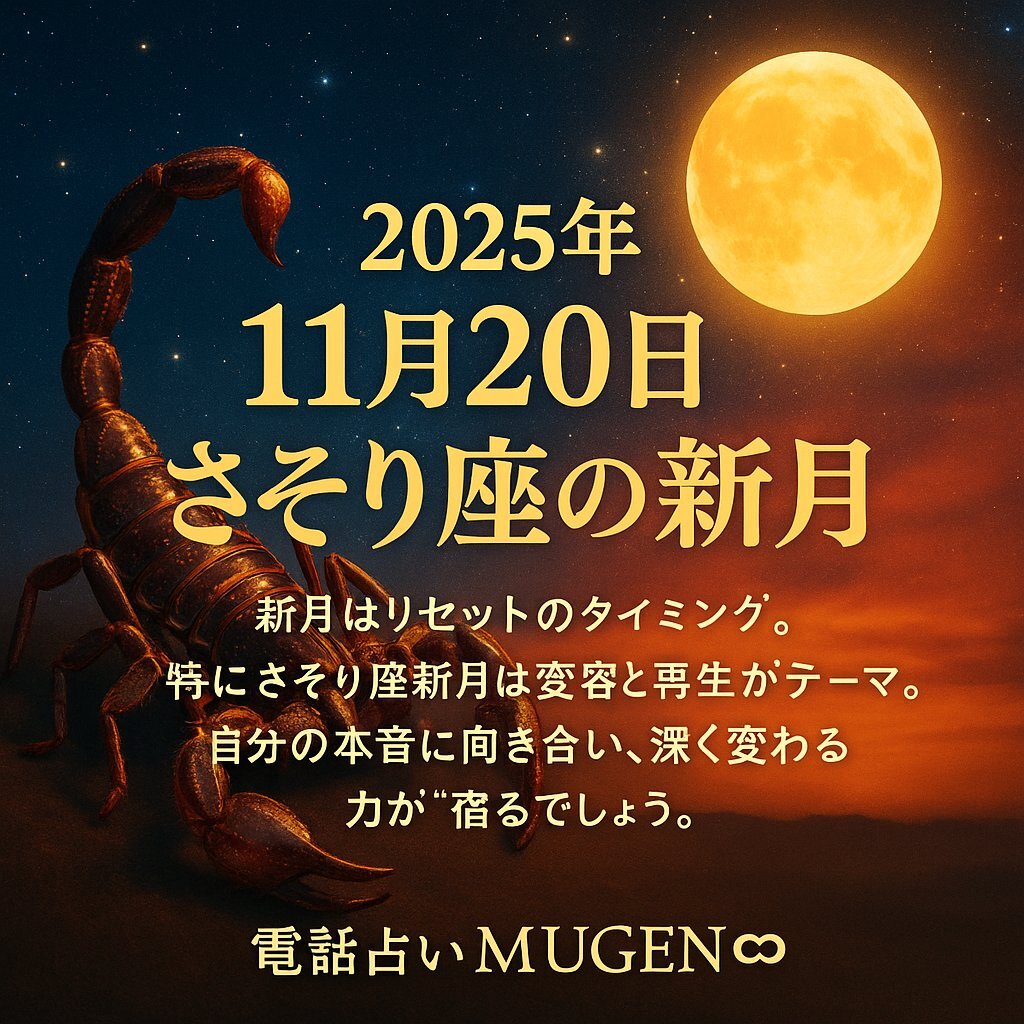 2025年11月20日(木)は、深い変容と再生の力をもつ「🦂#蠍座の新月」🌑。 秋が終盤に差し掛かり、空気が澄み、夜が長くなるこの季節── “浄化”と“再スタート”を象徴する新月のエネルギーが、さそり座特有の内側の感情・絆・真実を強く照らします🌑✨。 pic.x.com/KhAxSh4sJc