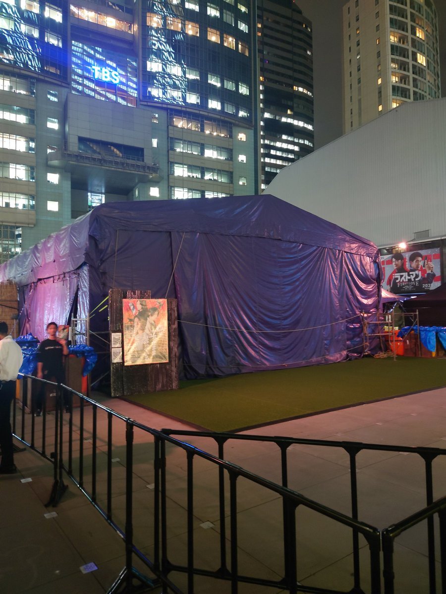 昨日はTBSの紫テント #赤坂芸術祭2025 の手伝い! #血は立ったまま眠っている を観劇! 背景の幕を下ろして、赤坂文字を見ると一気に現実に戻って 奇妙な気持ちになって、テント演劇の魅力😍 演出の #中屋敷法仁 さんの子供役も素晴らしかったです! 芸術祭は10/26まで是非! #血眠2025 #新宿梁山泊 pic.x.com/GYtqEipVlk