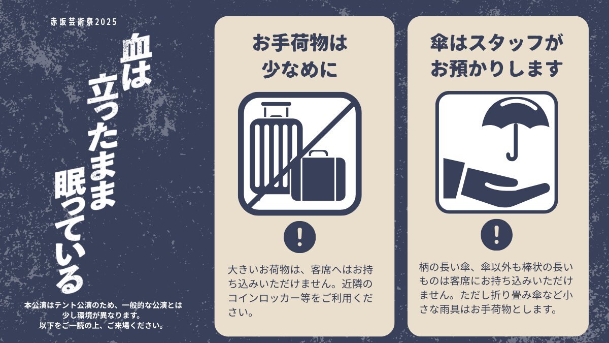 #赤坂芸術祭 「#血は立ったまま眠っている」 ⏰10月8日(水)18:30開演 🎪赤坂サカス広場 特設紫テント 👲子供役ゲスト: #小御門優一郎(ノーミーツ)@KoMIkado_21g ▼当日引換券(23:59まで) w.pia.jp/t/akasakageiju… 当日券:開演1時間前より販売(現金のみのお取り扱い) ▼公式サイト pic.x.com/mZBERZH0Xg