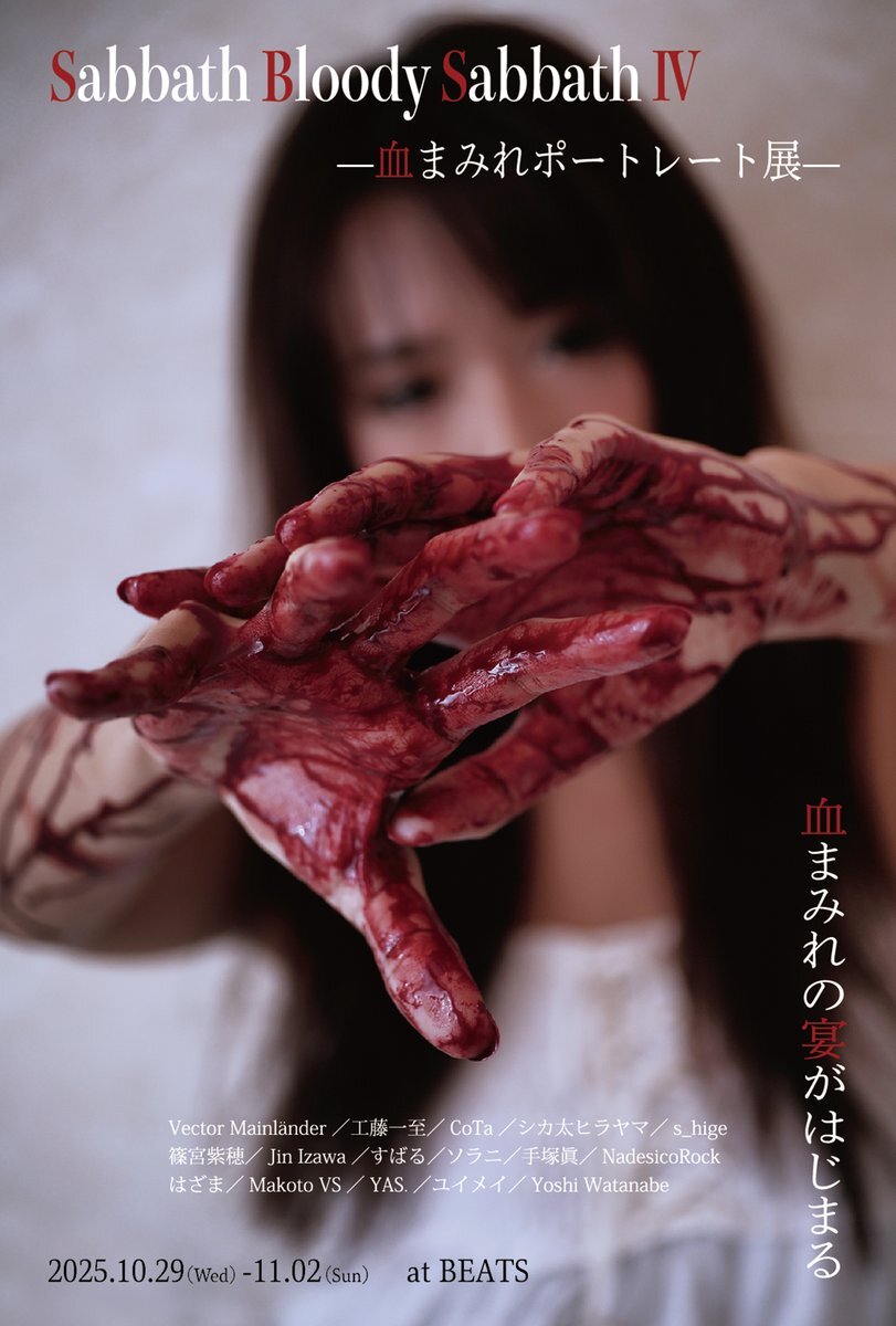 【拡散希望】血まみれポートレート展「Sabbath Bloody Sabbath」展も開催4日目を迎えました。大阪・今里のBEATSにて12時からです。本日も在廊しておりますので、ご来廊ください。よろしくお願いいたします。 #ポートレート写真 #ポートレート好きな人と繋がりたい #写真展 #血まみれ pic.x.com/hfMUrVHrTP