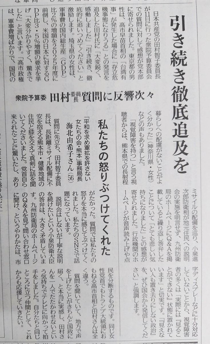 田村さん「戦争の準備は当たり前、憲法の制約は関係ないと聞こえる。3.5%を要求しているのは周知の事実。3.5%は拒否しなくてはいけない。3.5%に増額となれば21兆円。医療・介護・生活保護の予算18兆円を大きく超えるありえない規模」 #衆院予算委