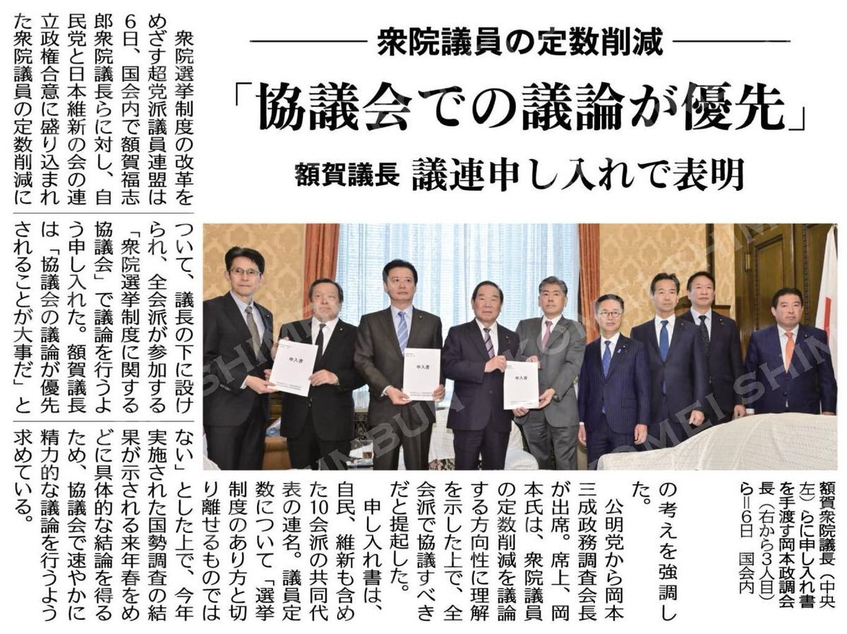 #衆院議員の定数削減/「協議会での議論が優先」/額賀議長、議連申し入れで表明 #公明新聞電子版 2025年11月07日付 komei.or.jp/newspaper-app/ pic.x.com/nexWdsncqg