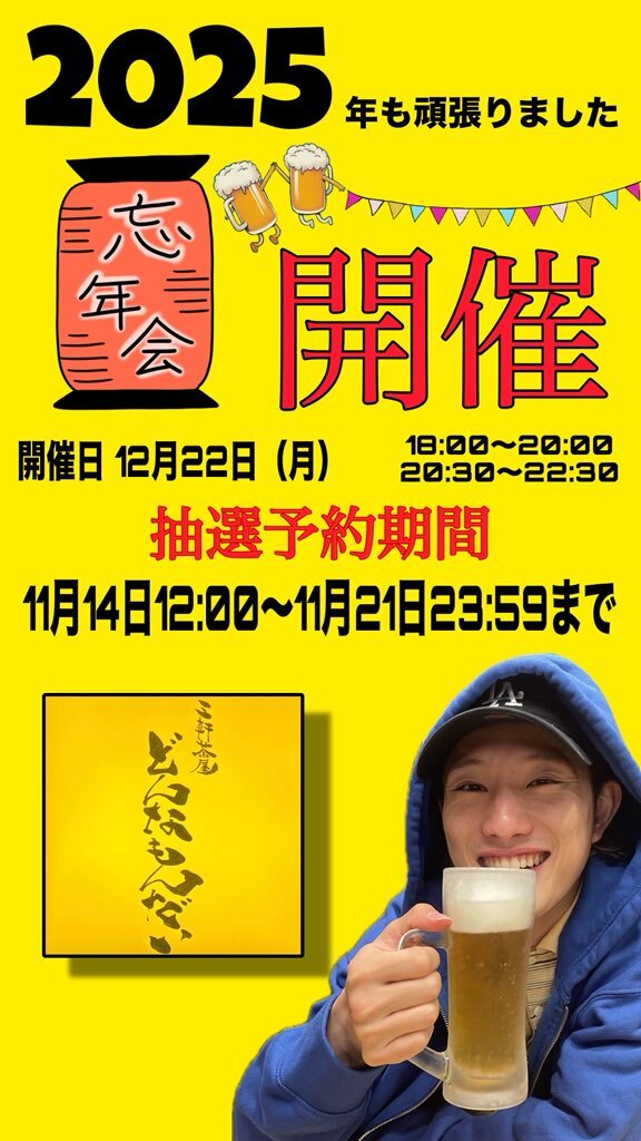 12月22日(月) 忘年会eventやります✨ いっぱい皆んなでお話ししましょ☺️ 抽選予約はこちらから🎫 docs.google.com/forms/d/e/1FAI… #佐久本歩夢