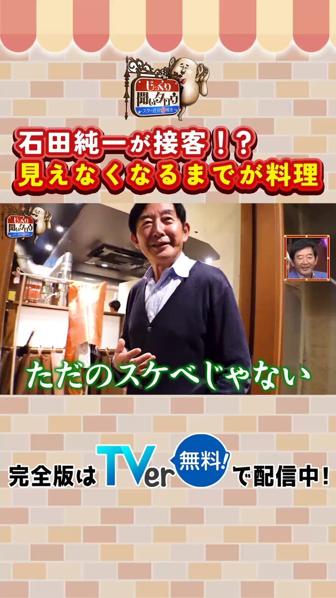 【じっくり聞いタロウ】石田純一が接客!?見えなくなるまでが料理 完全版はTVerで配信中! tver.jp/series/srew1e9… #炎上 #コロナ禍 #石田純一 #じっくり聞いタロウ #名倉潤 #河本準一 #熊切あさ美