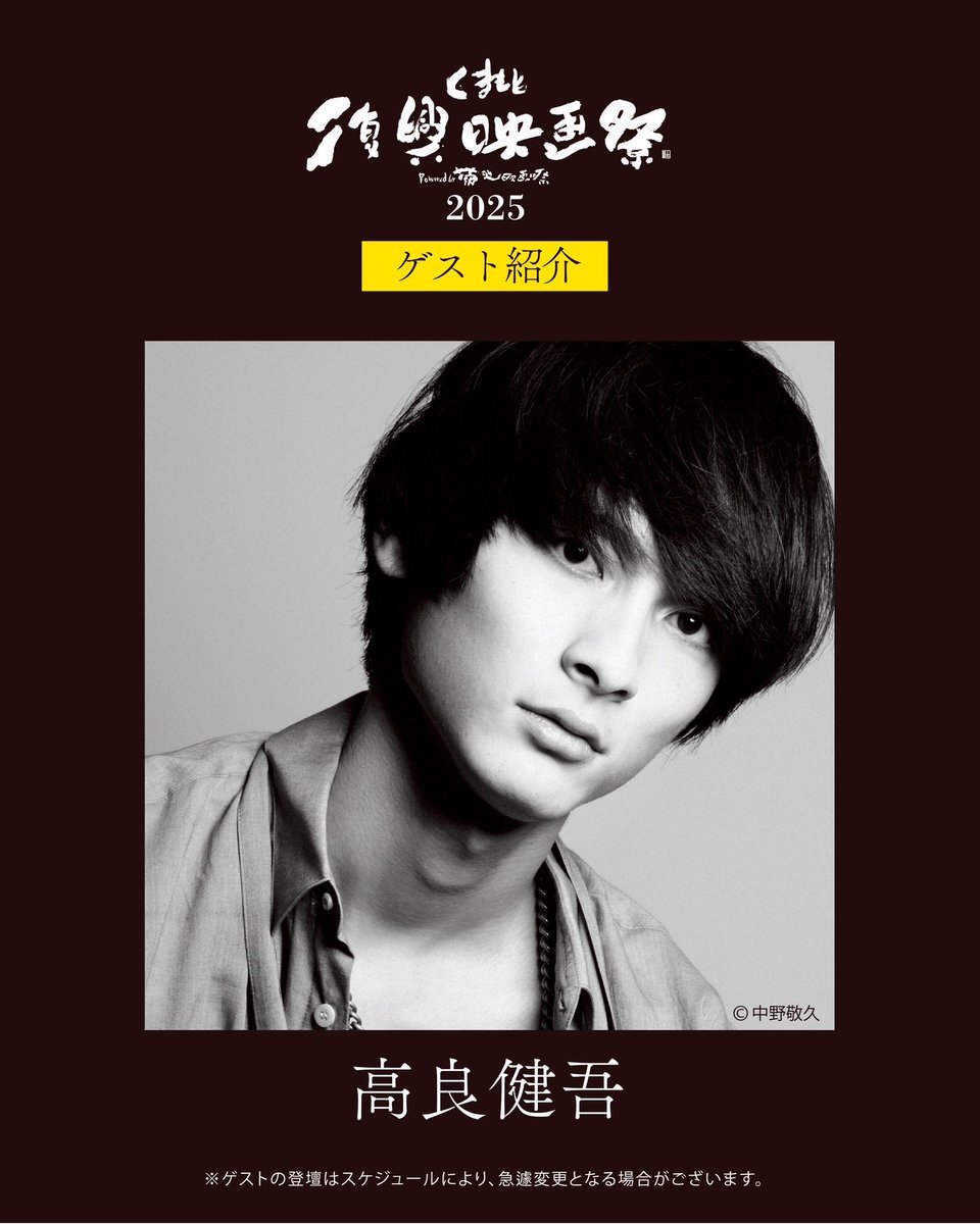 #くまもと復興映画祭2025 オープニング上映の登壇ゲスト追加発表‼️ #高良健吾 さん #福士蒼汰 さん #福原遥 さん チケット絶賛発売中です🎫✨ livepocket.jp/t/fukkoueigasa… #行定勲監督 # pic.x.com/ABHbKvNknU