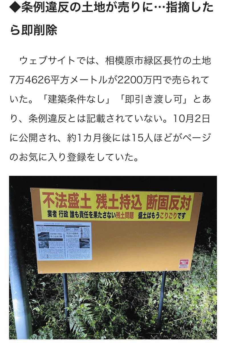 なんと…志田峠の不適切盛土が売りに出されているという情報は本当でした 噂の東京マガジンでは500万で買ったと言ってましたが…2200万!? 知らずに買ったら初めから数億円の赤字では😨 是正にいったいいくらかかるんだ!? #残土ロンダリング #不適切盛土 #相模原市 athome.co.jp/tochi/69878396…