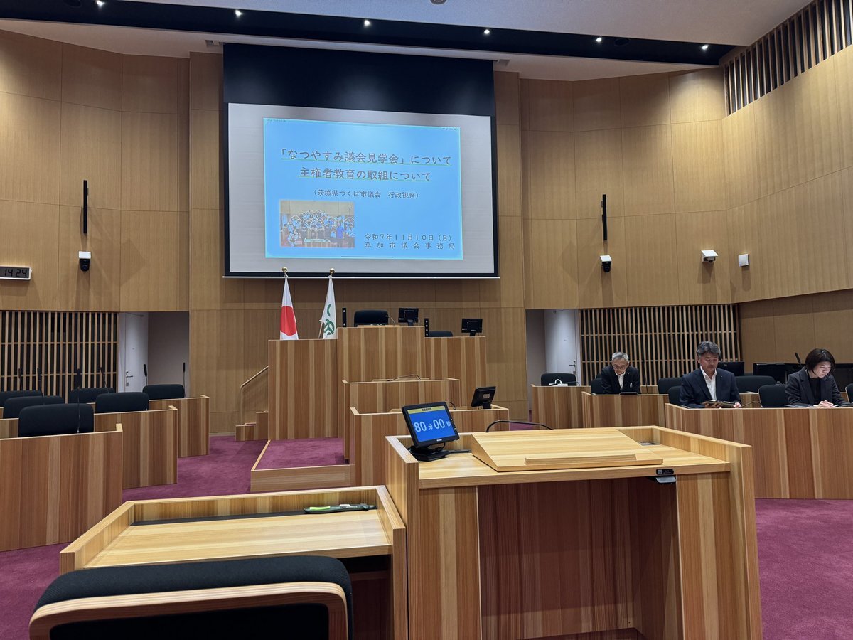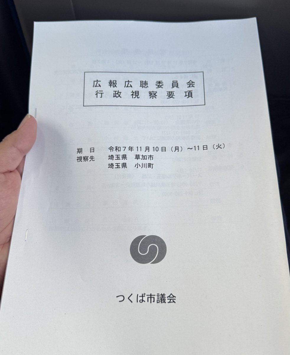 本日から広報広聴委員会の行政視察を行います。視察先は埼玉県の草加市と小川町で、「主権者教育」の取り組みについて学びます。 #つくば市議会 #行政視察 pic.x.com/xLtEfh7T0j